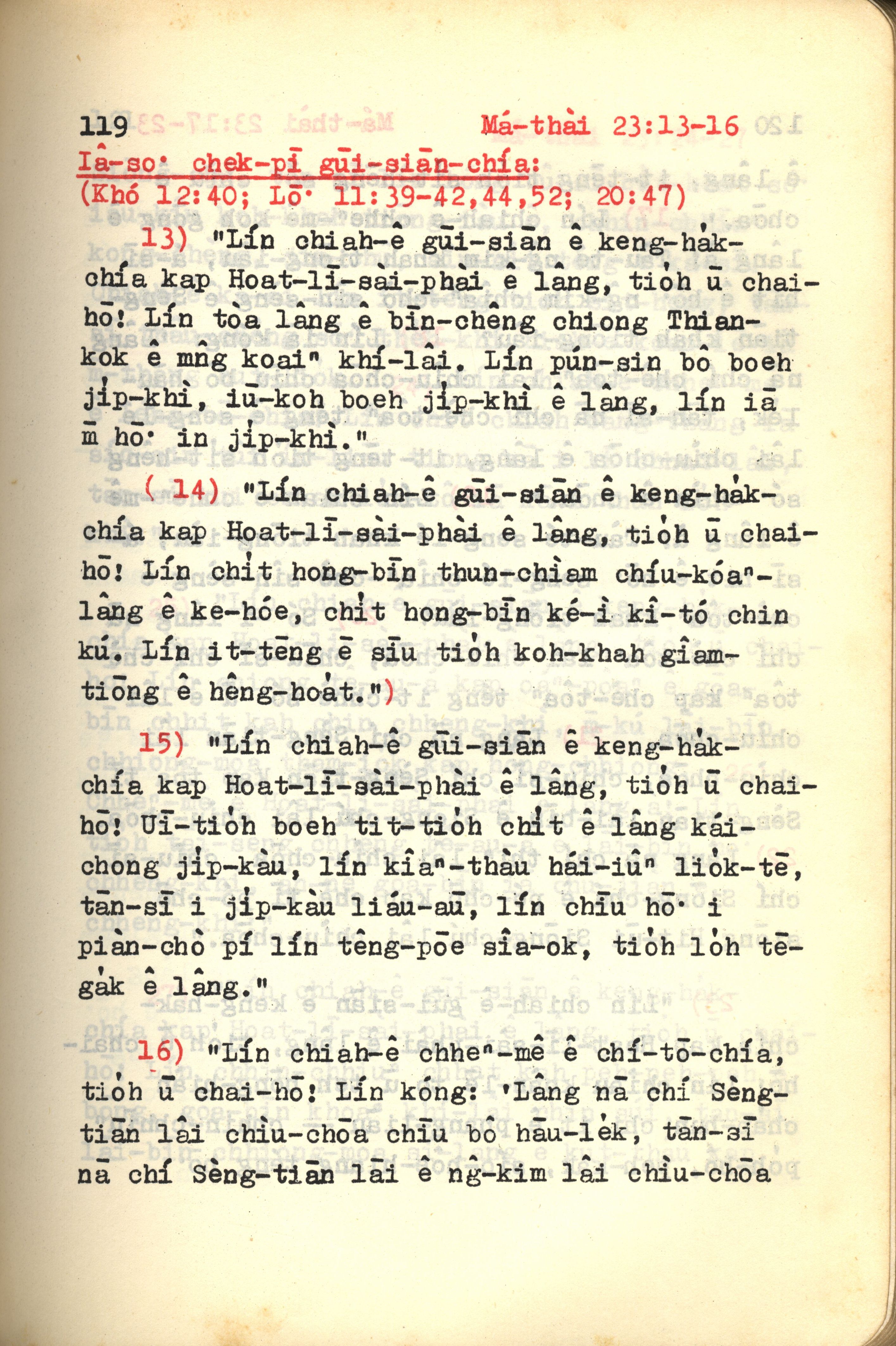 1972年新约红皮圣经 马太福音 23 章 13 节到 23 章 16 节