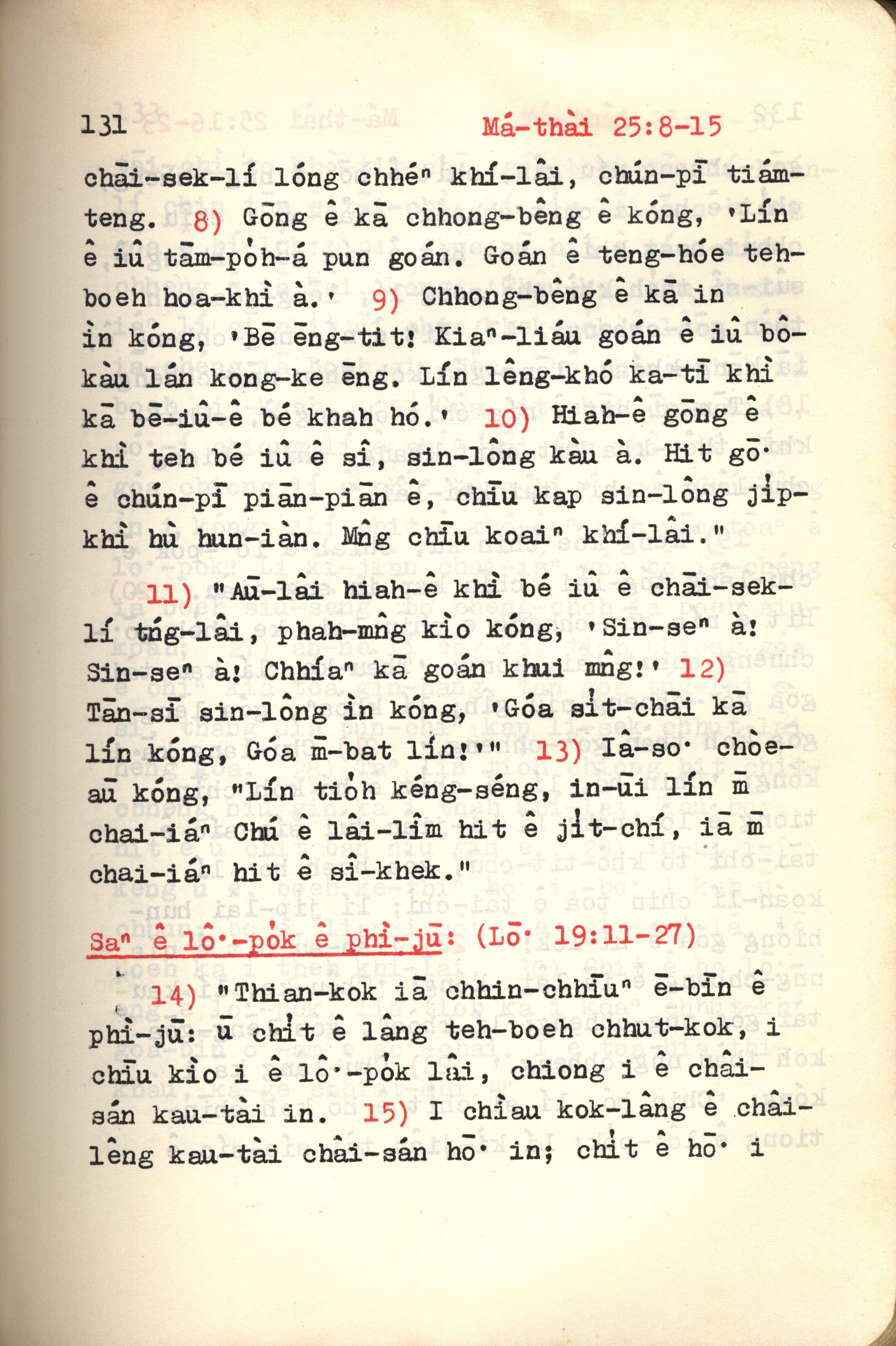 1972年新约红皮圣经 马太福音 25 章 8 节到 25 章 15 节