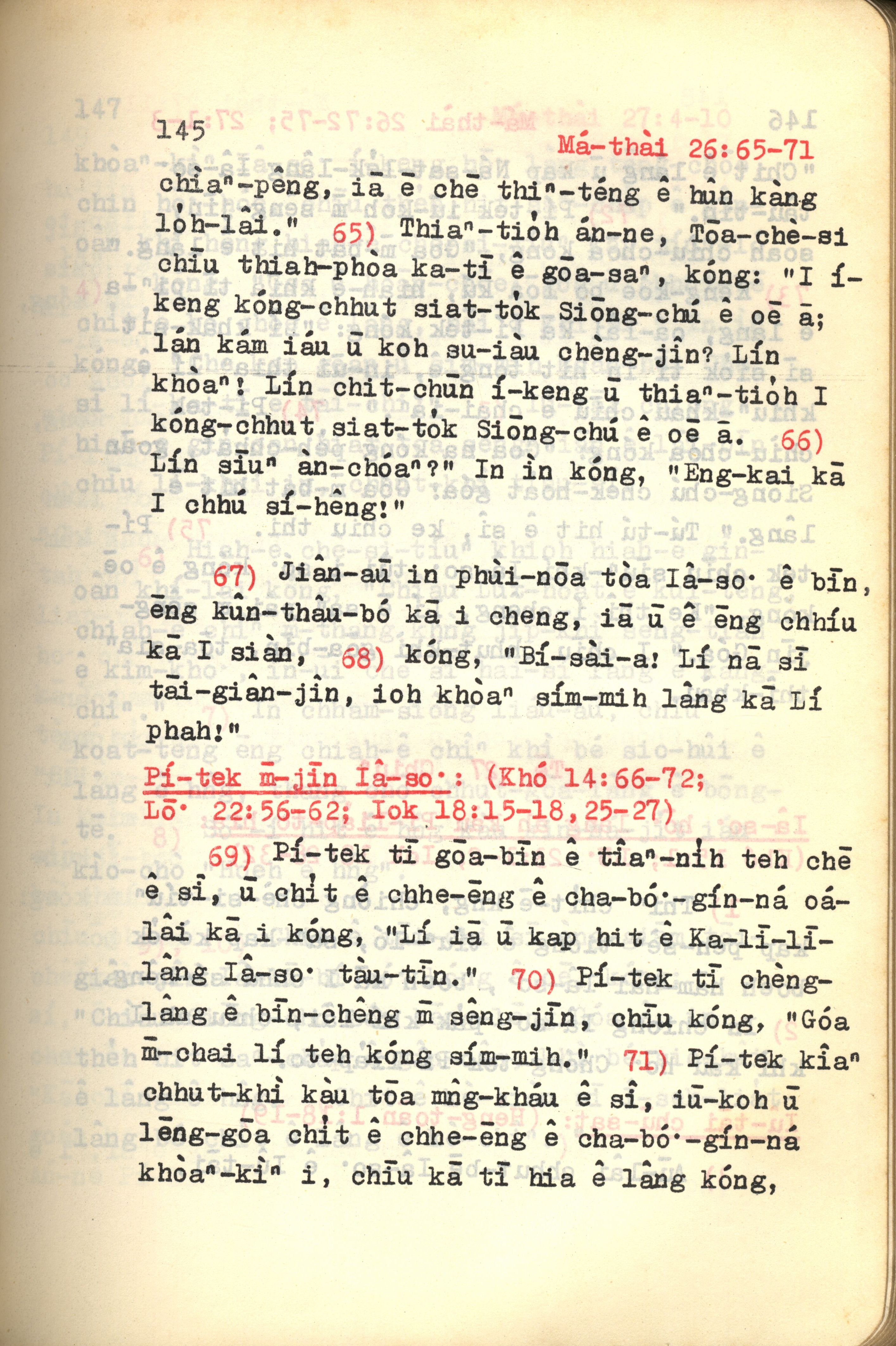 1972年新约红皮圣经 马太福音 26 章 65 节到 26 章 71 节