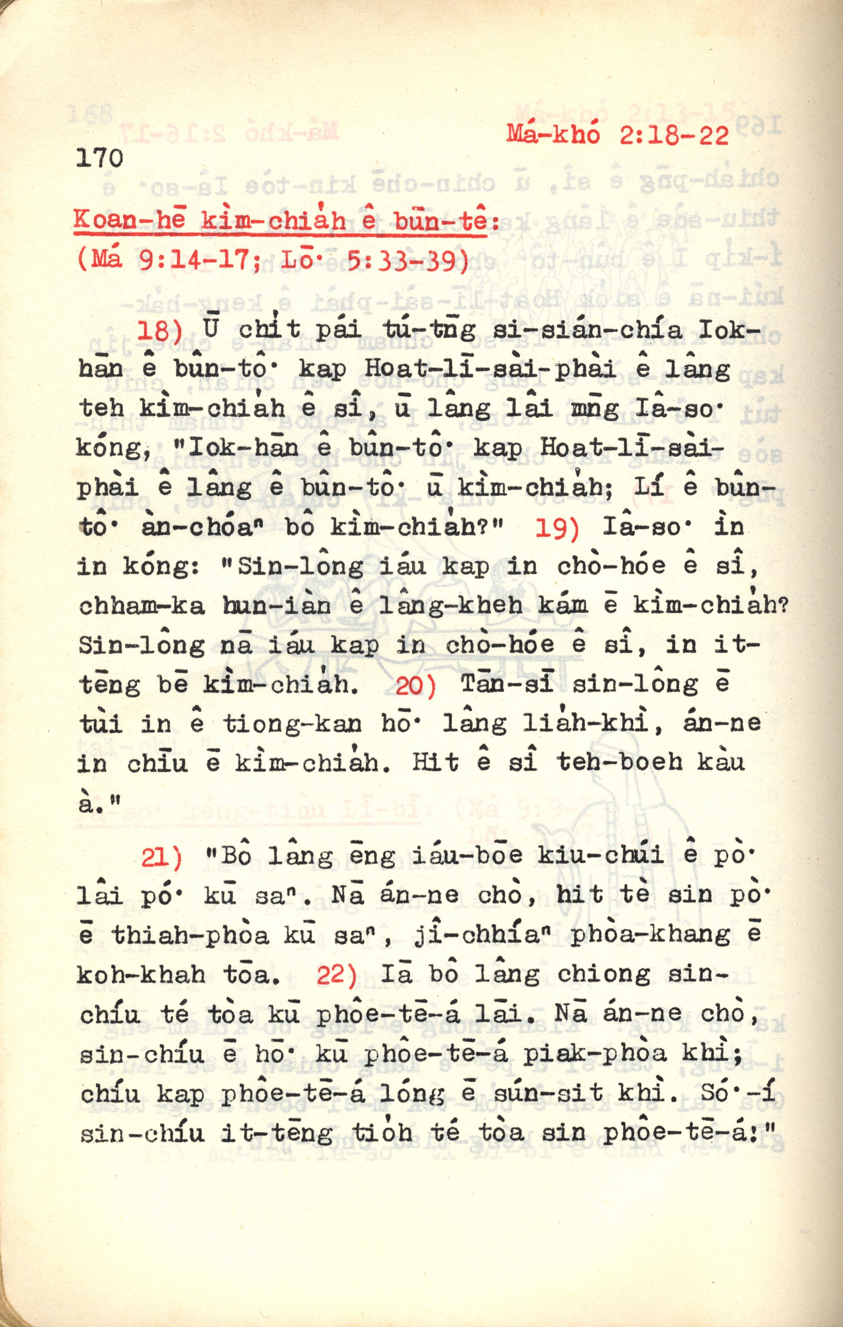 1972年新约红皮圣经 马可福音 2 章 18 节到 2 章 22 节