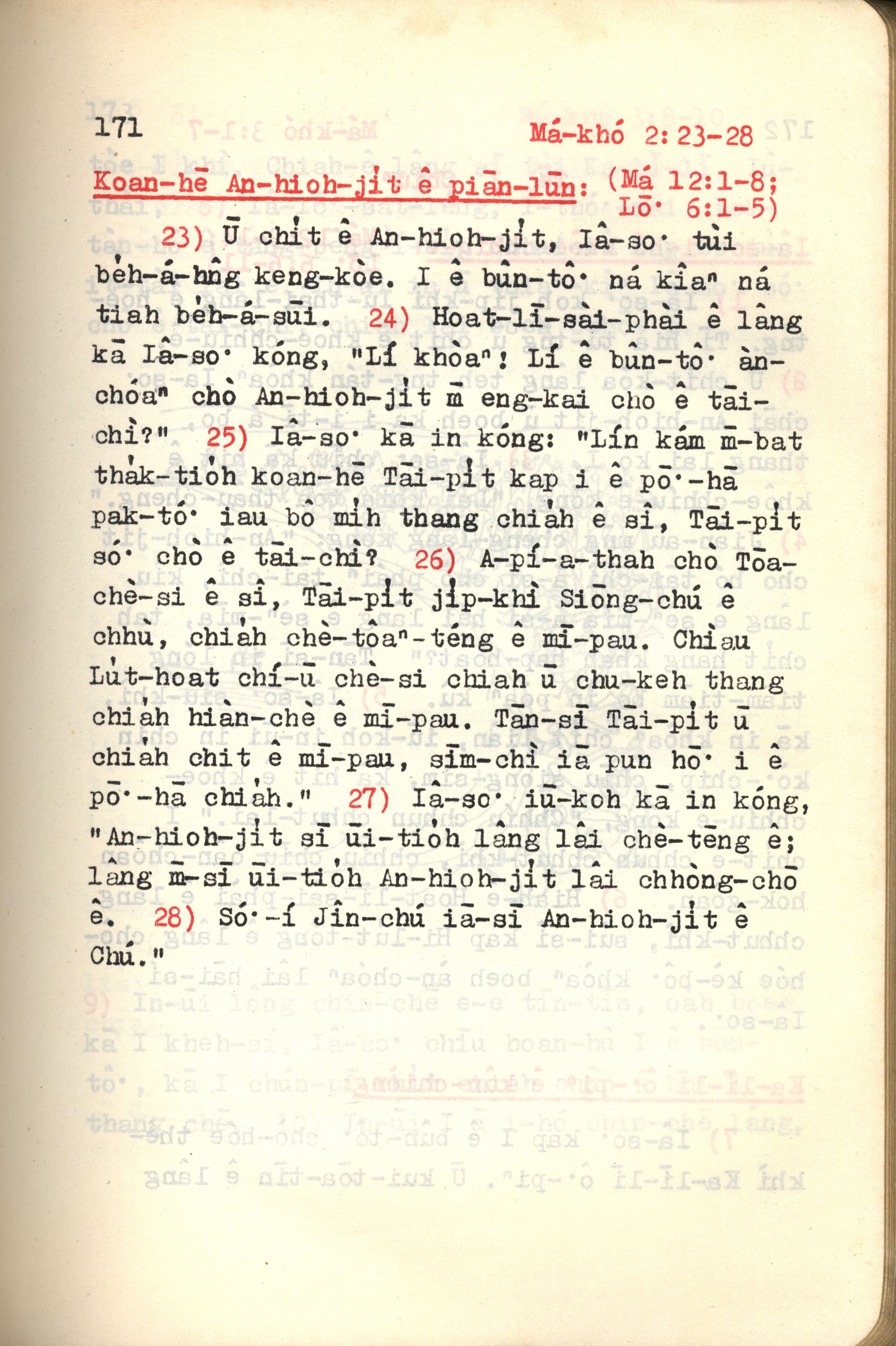 1972年新约红皮圣经 马可福音 2 章 23 节到 2 章 28 节