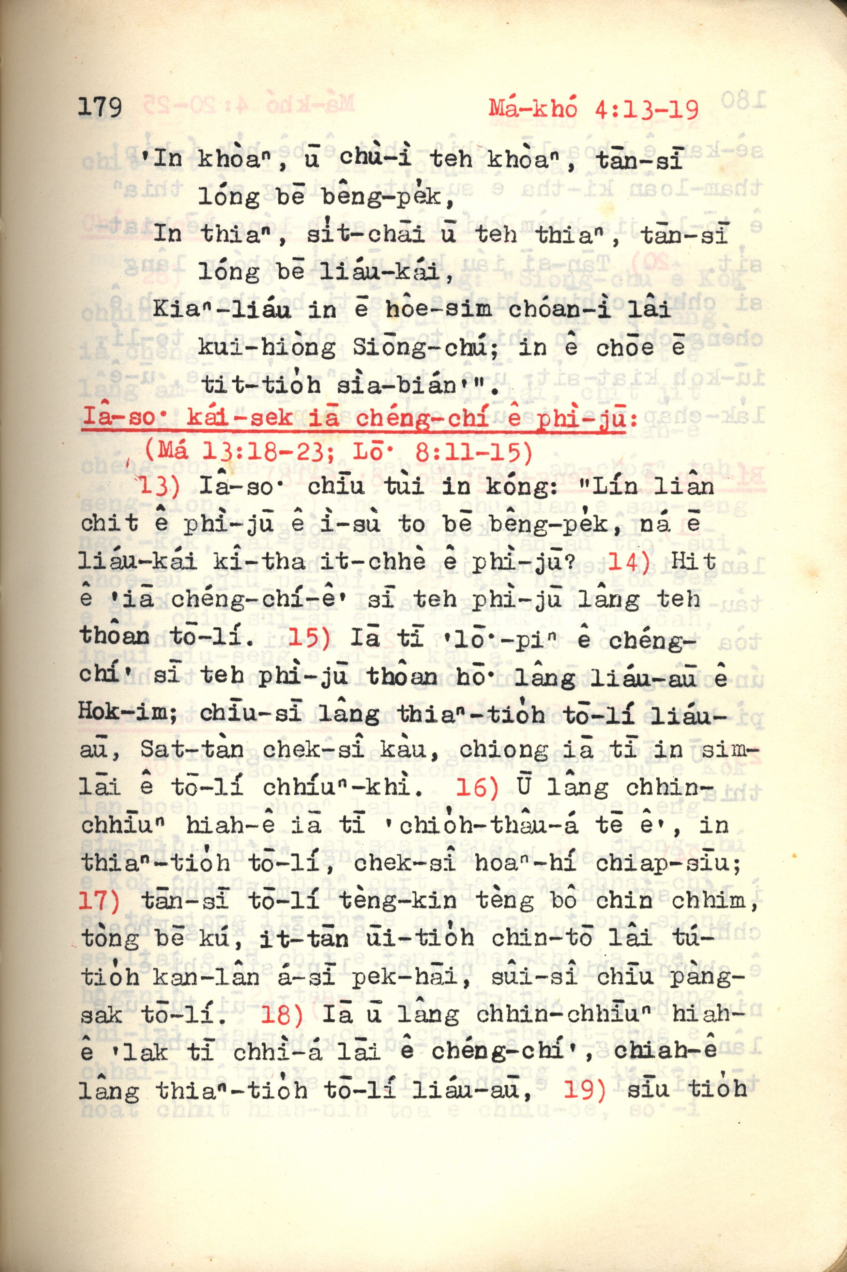 1972年新约红皮圣经 马可福音 4 章 13 节到 4 章 19 节