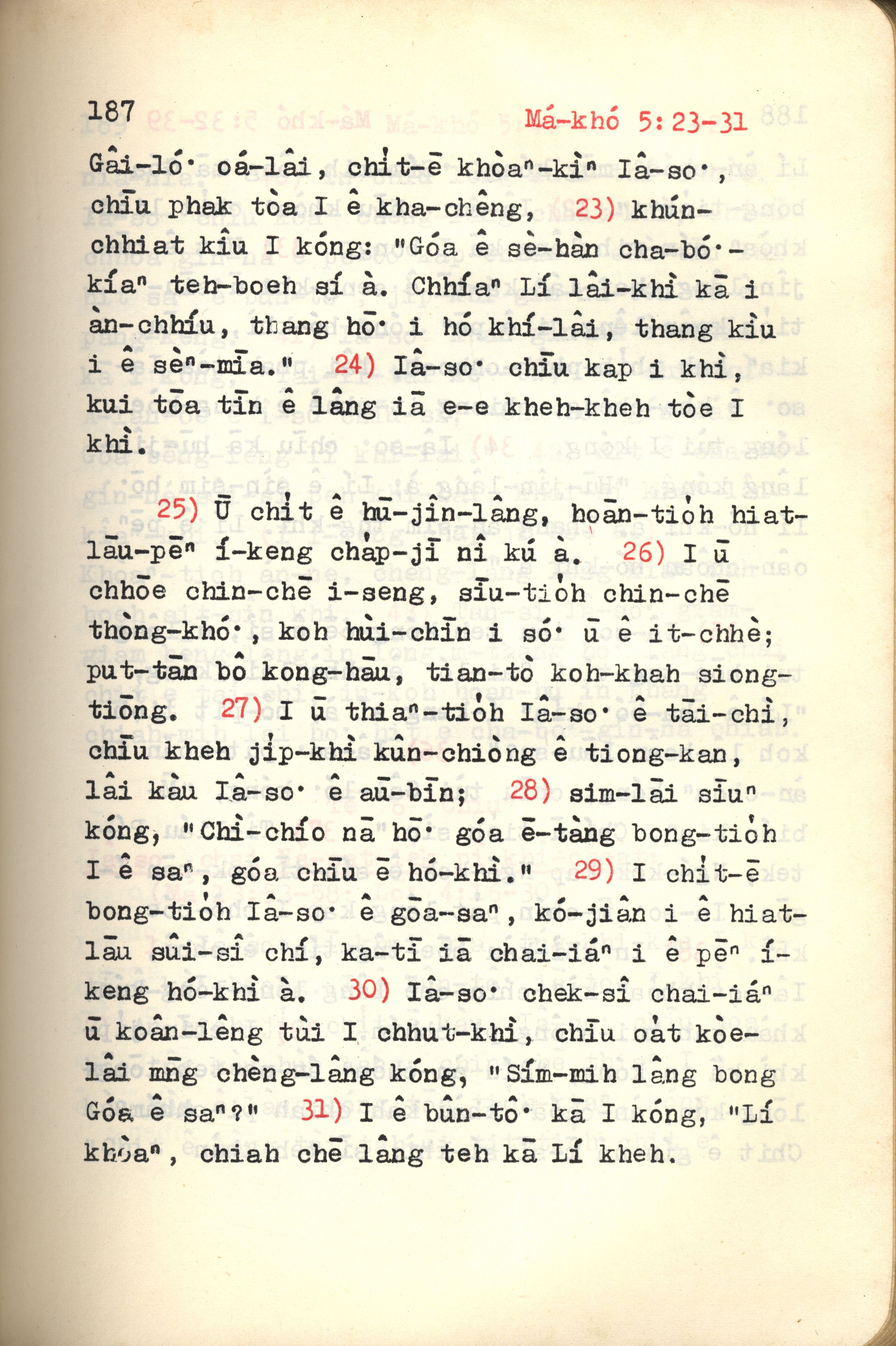 1972年新约红皮圣经 马可福音 5 章 23 节到 5 章 31 节