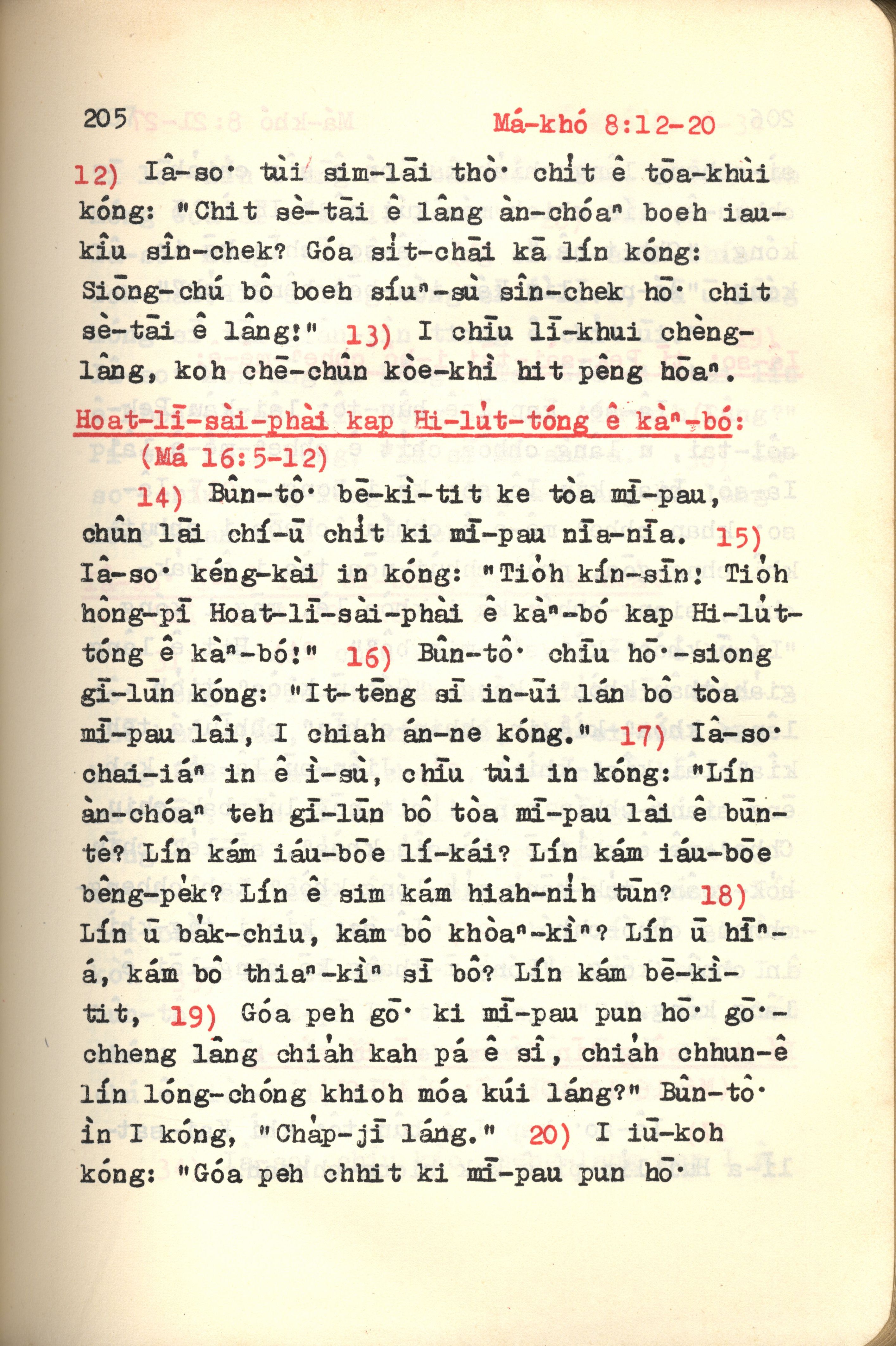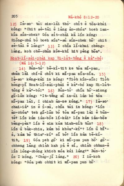 1972年新约红皮圣经 马可福音 8 章 12 节到 8 章 20 节