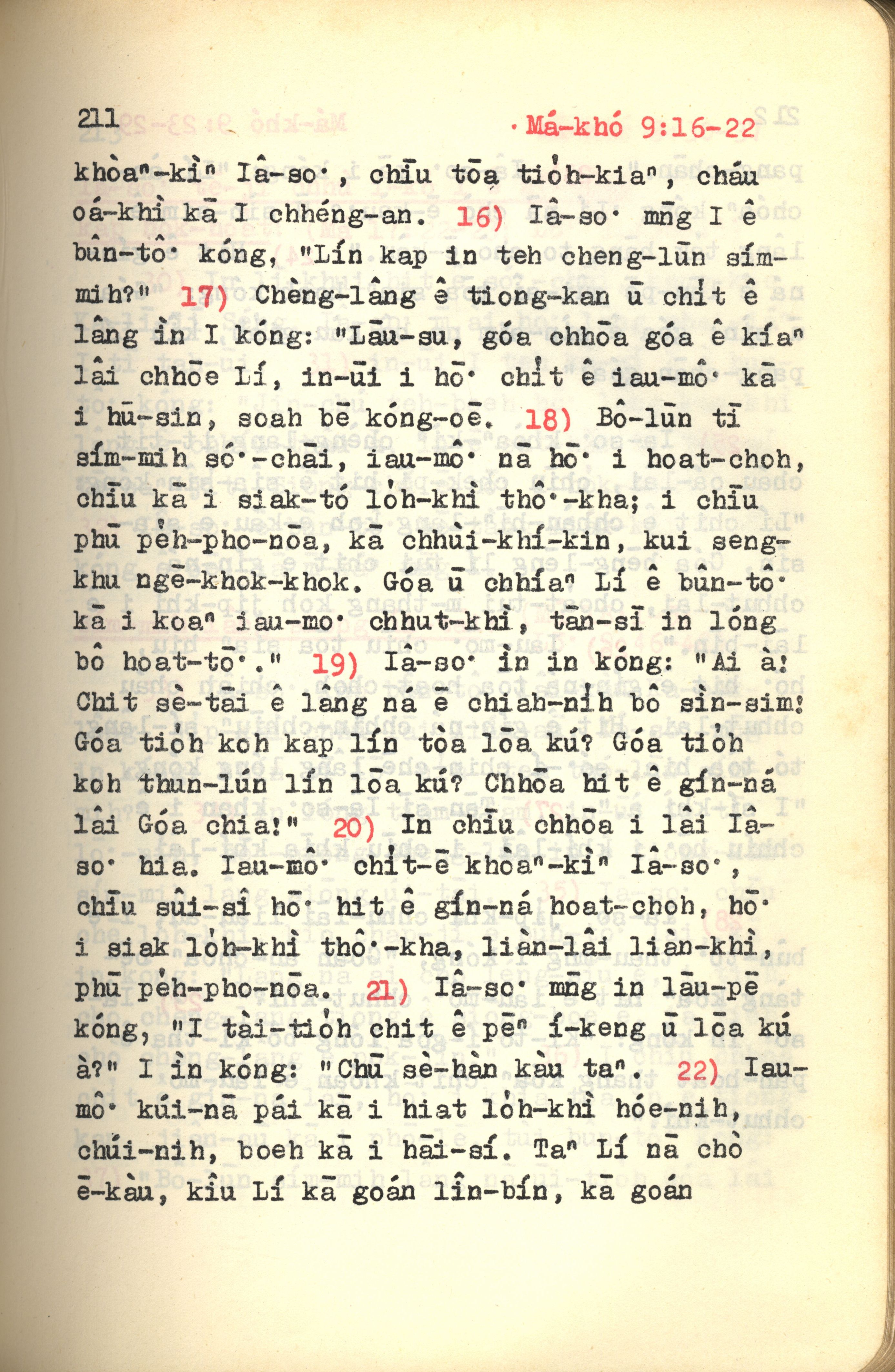 1972年新约红皮圣经 马可福音 9 章 16 节到 9 章 22 节