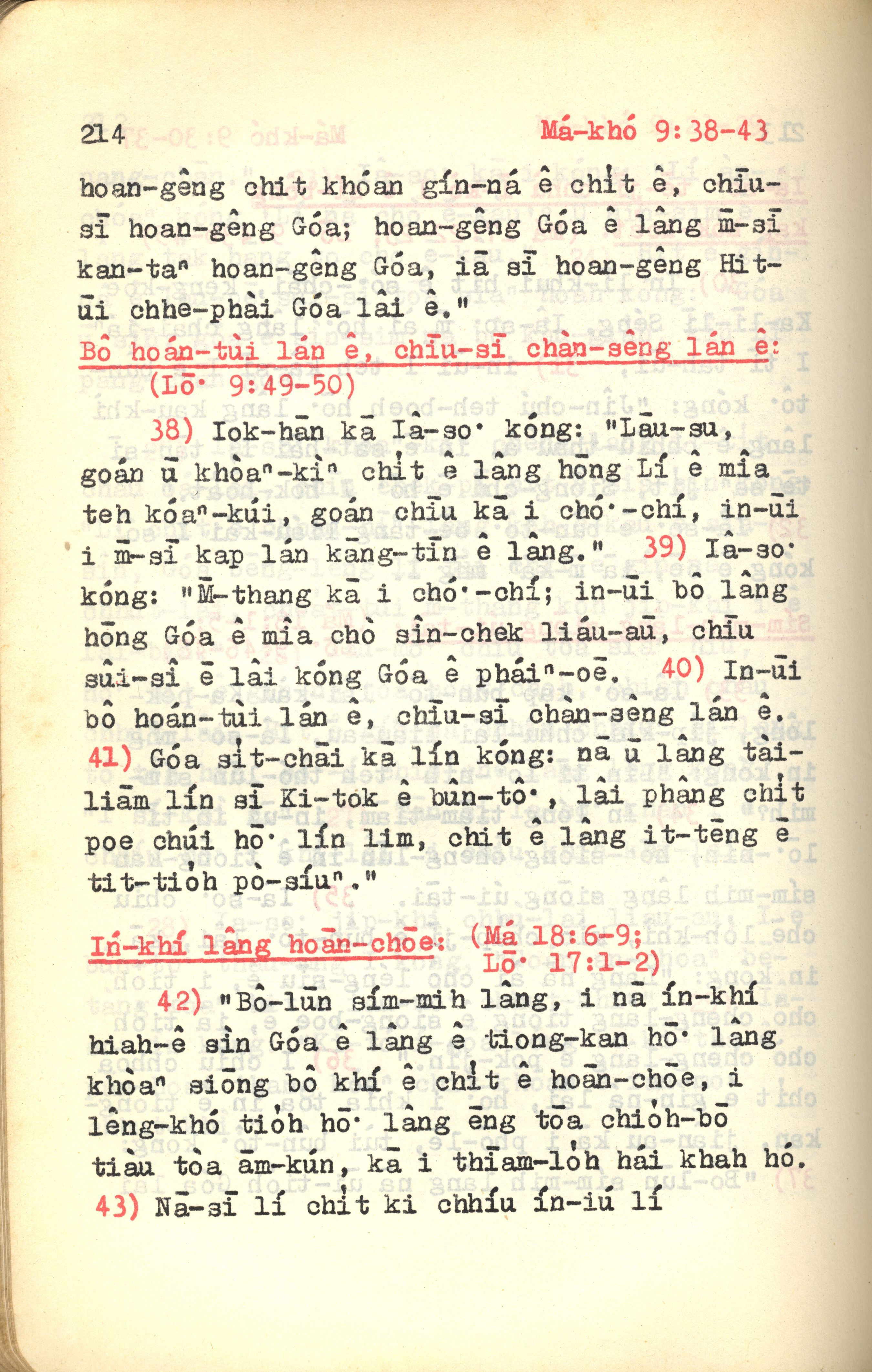 1972年新约红皮圣经 马可福音 9 章 38 节到 9 章 43 节