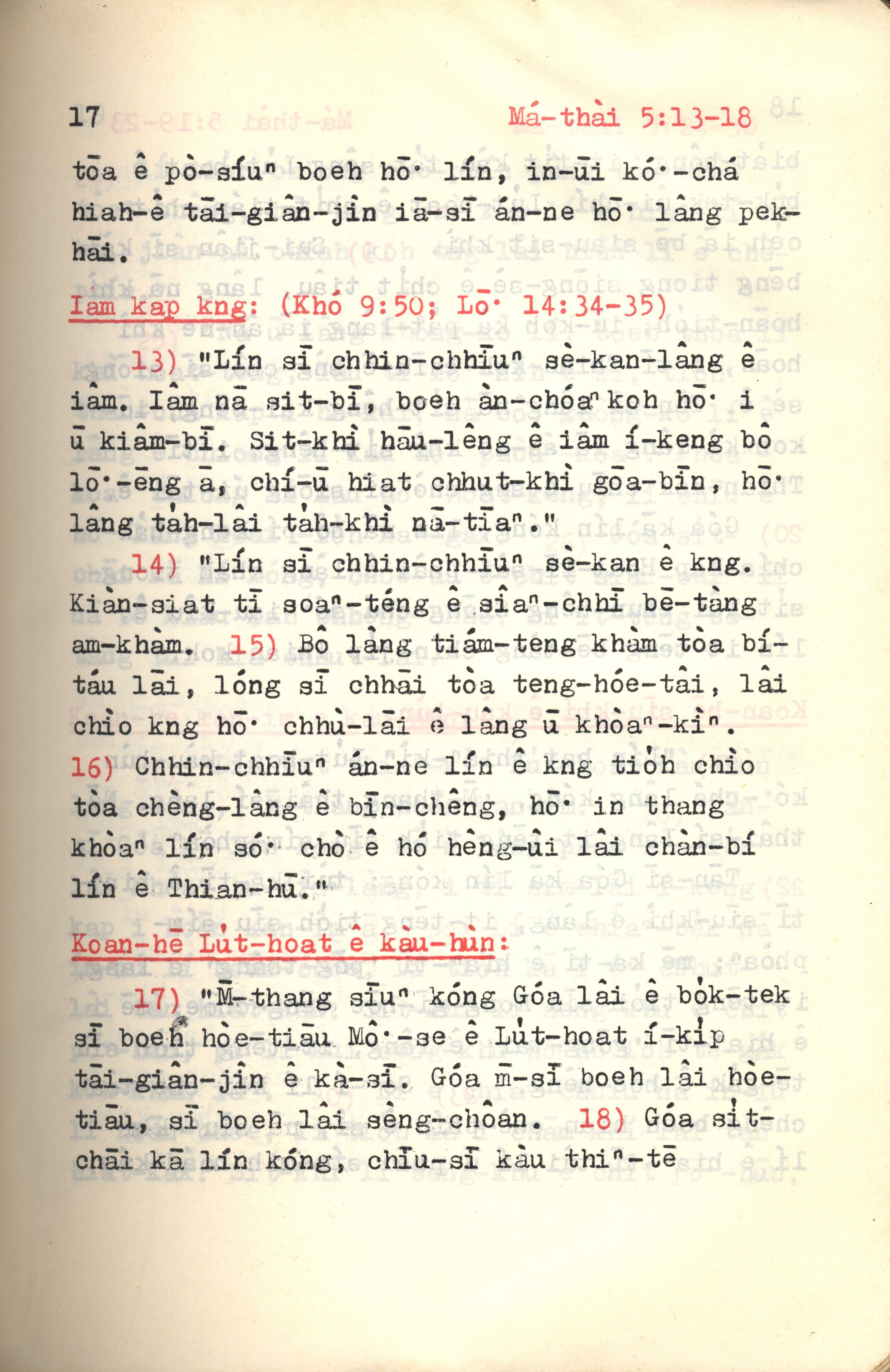 1972年新约红皮圣经 马太福音 5 章 13 节到 5 章 18 节