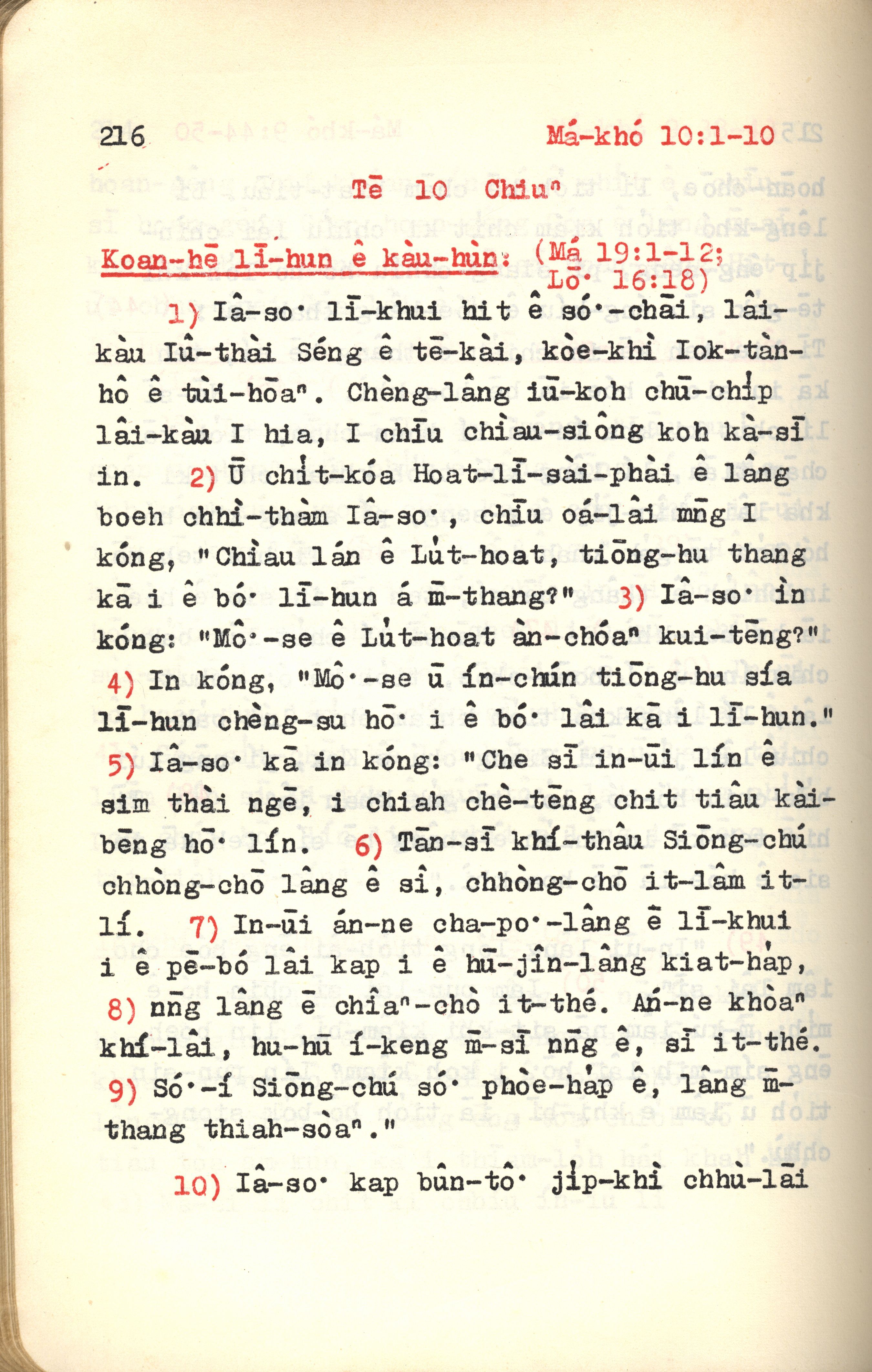 1972年新约红皮圣经 马可福音 10 章 1 节到 10 章 10 节