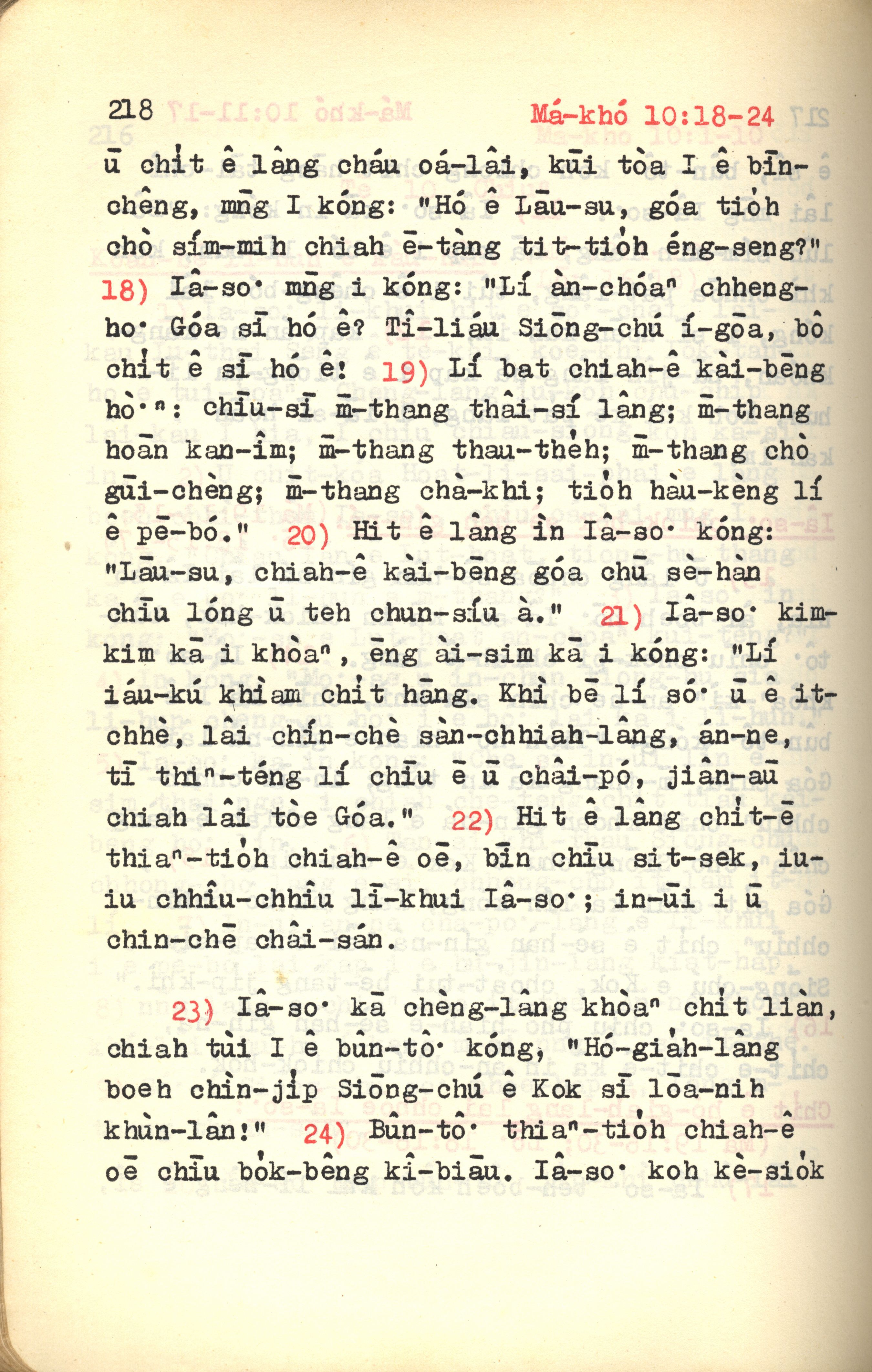 1972年新约红皮圣经 马可福音 10 章 18 节到 10 章 24 节