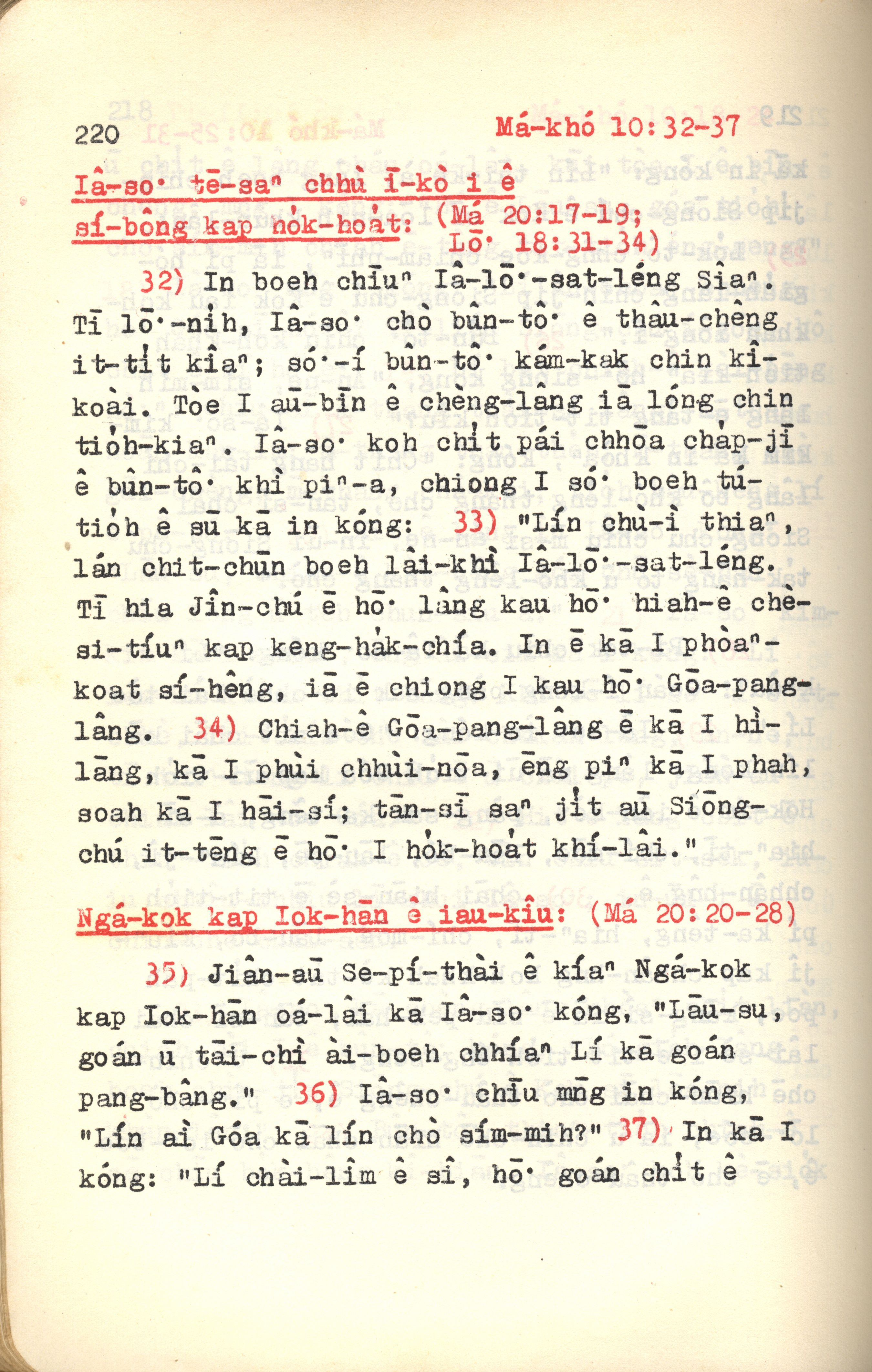 1972年新约红皮圣经 马可福音 10 章 32 节到 10 章 37 节