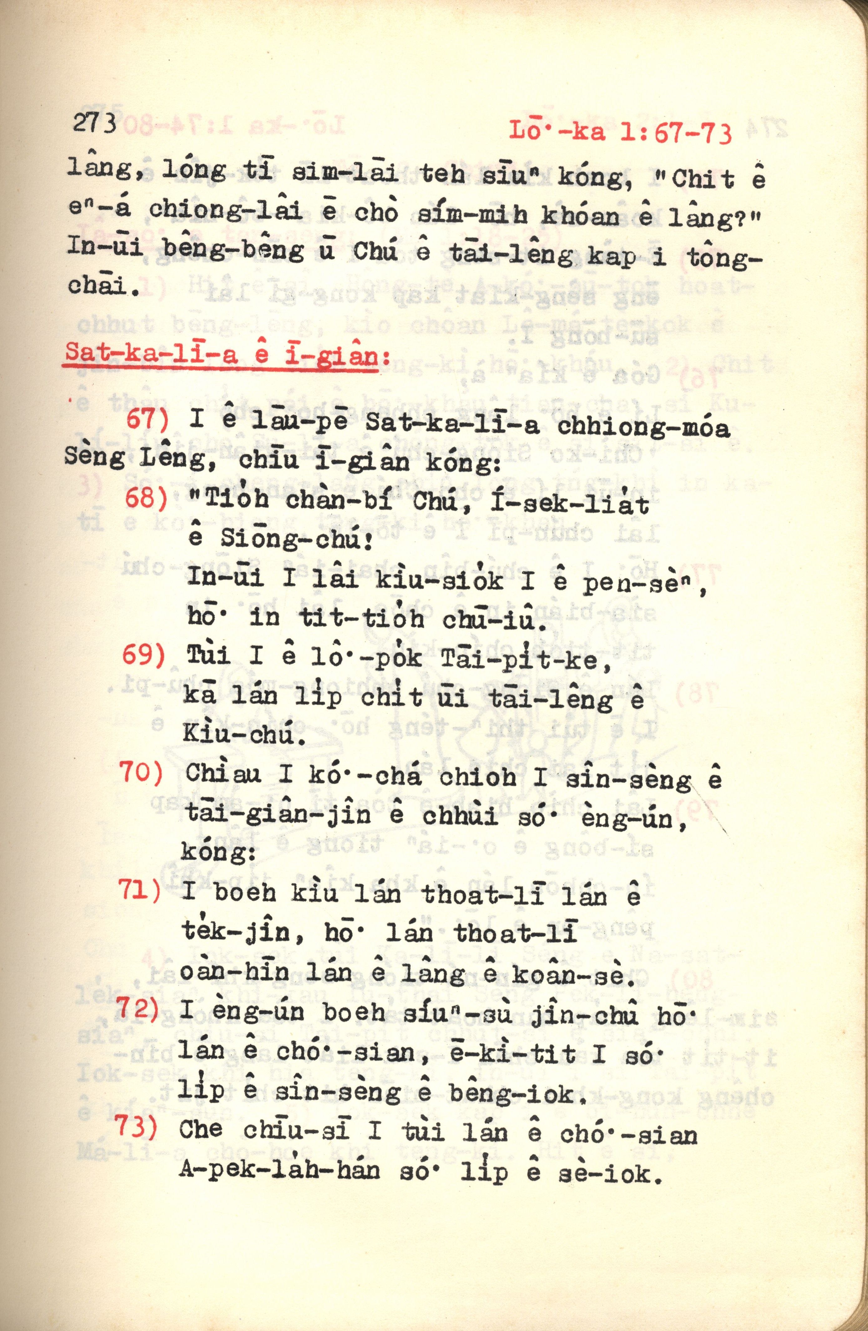 1972年新约红皮圣经 路加福音 1 章 67 节到 1 章 73 节