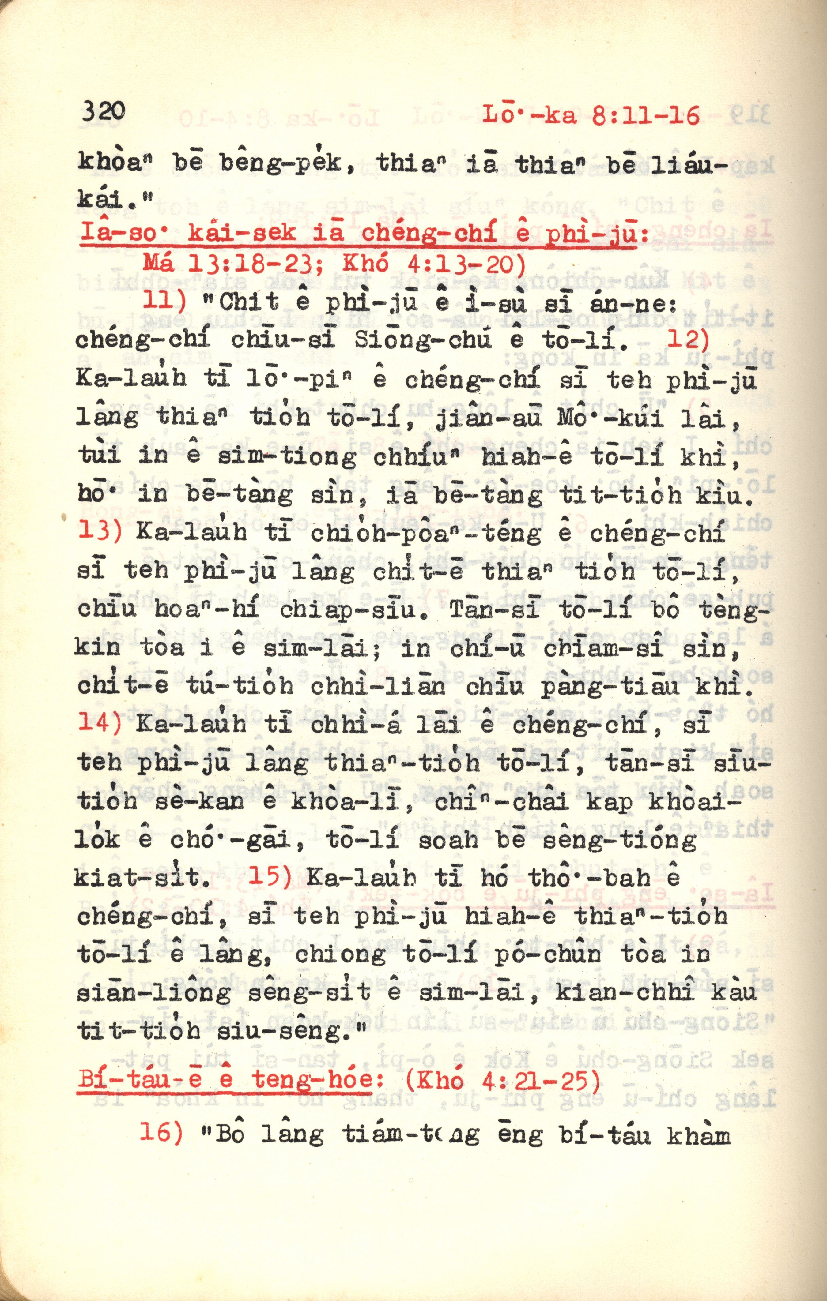 1972年新约红皮圣经 路加福音 8 章 11 节到 8 章 16 节