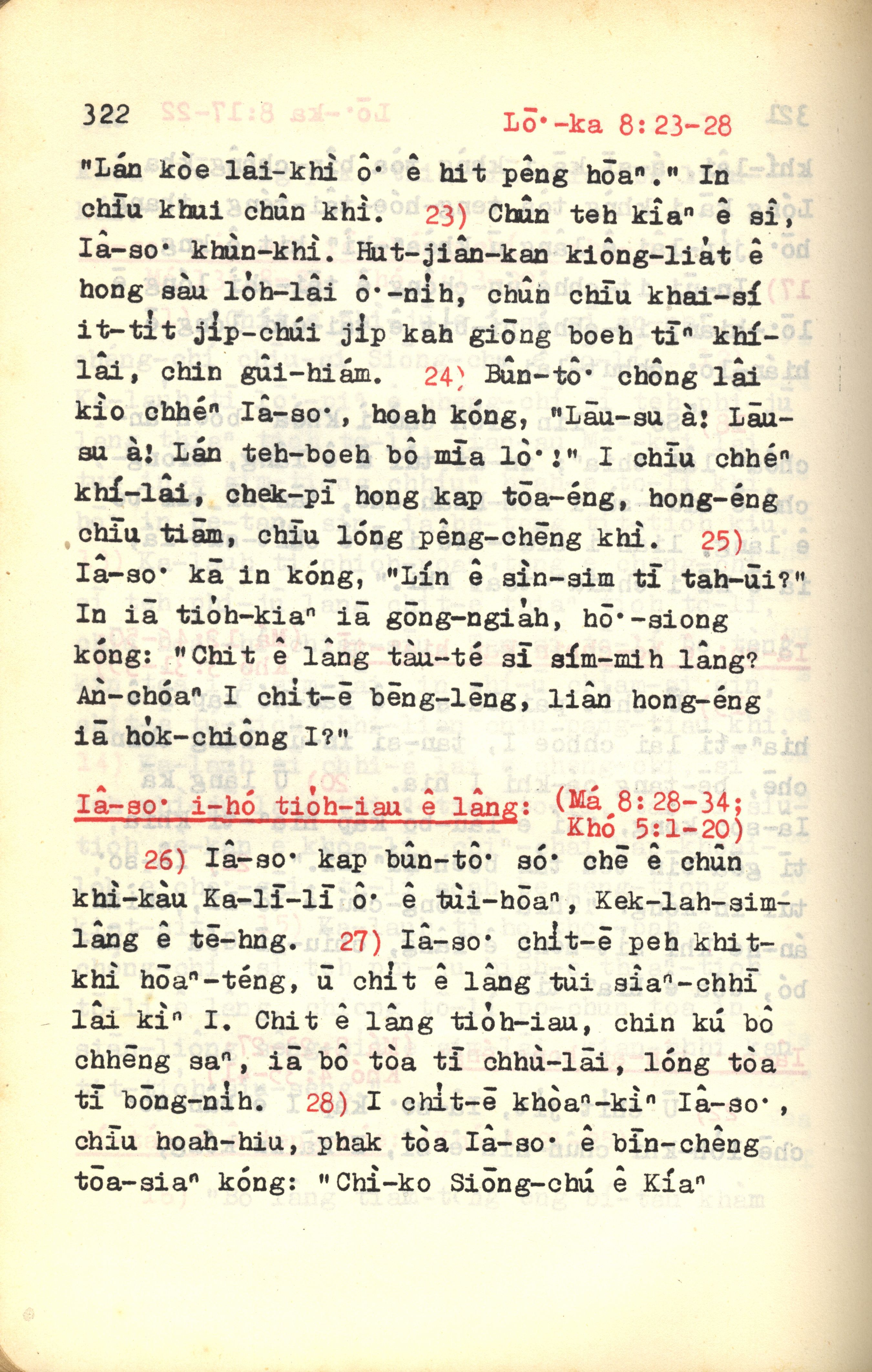 1972年新约红皮圣经 路加福音 8 章 23 节到 8 章 28 节