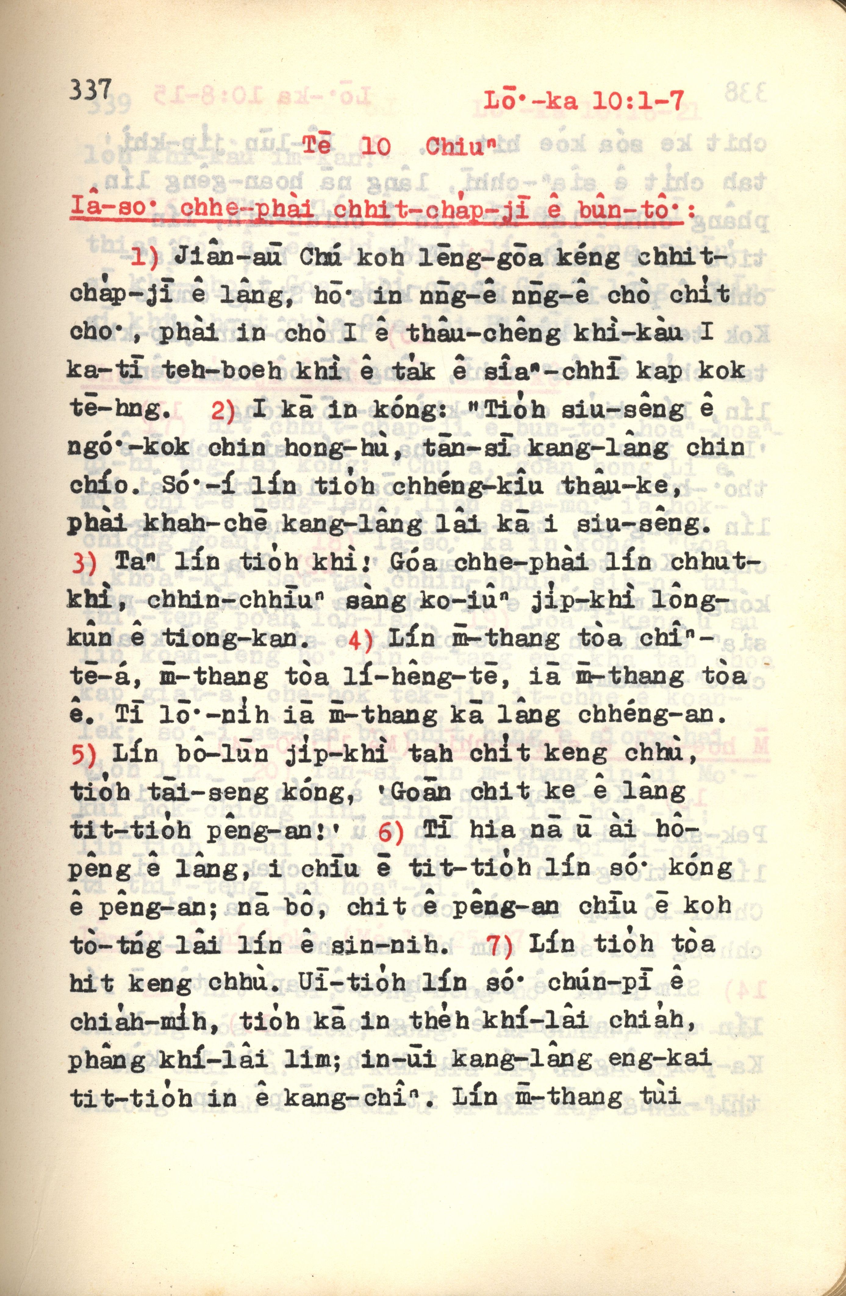 1972年新约红皮圣经 路加福音 10 章 1 节到 10 章 7 节