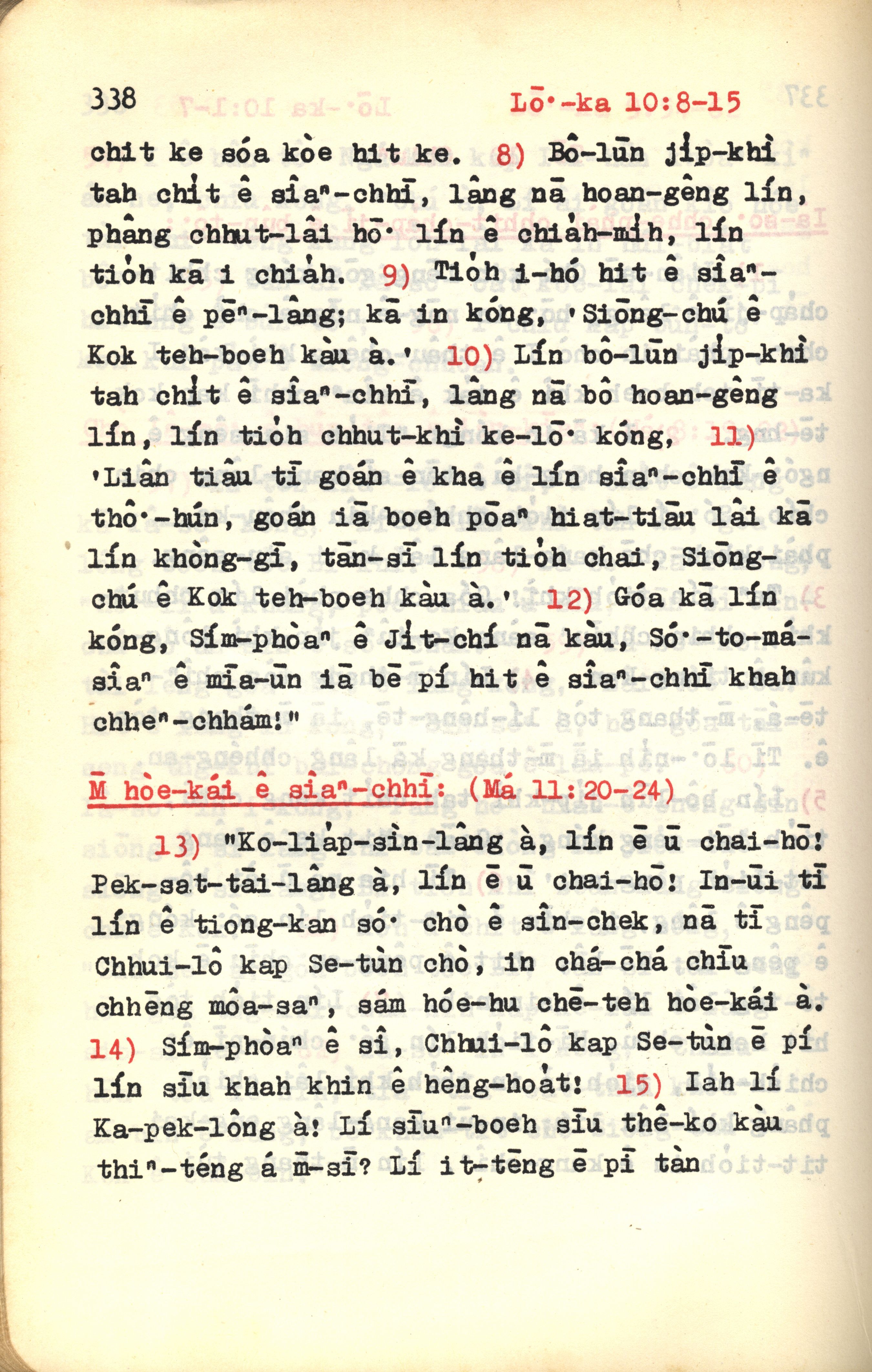 1972年新约红皮圣经 路加福音 10 章 8 节到 10 章 15 节