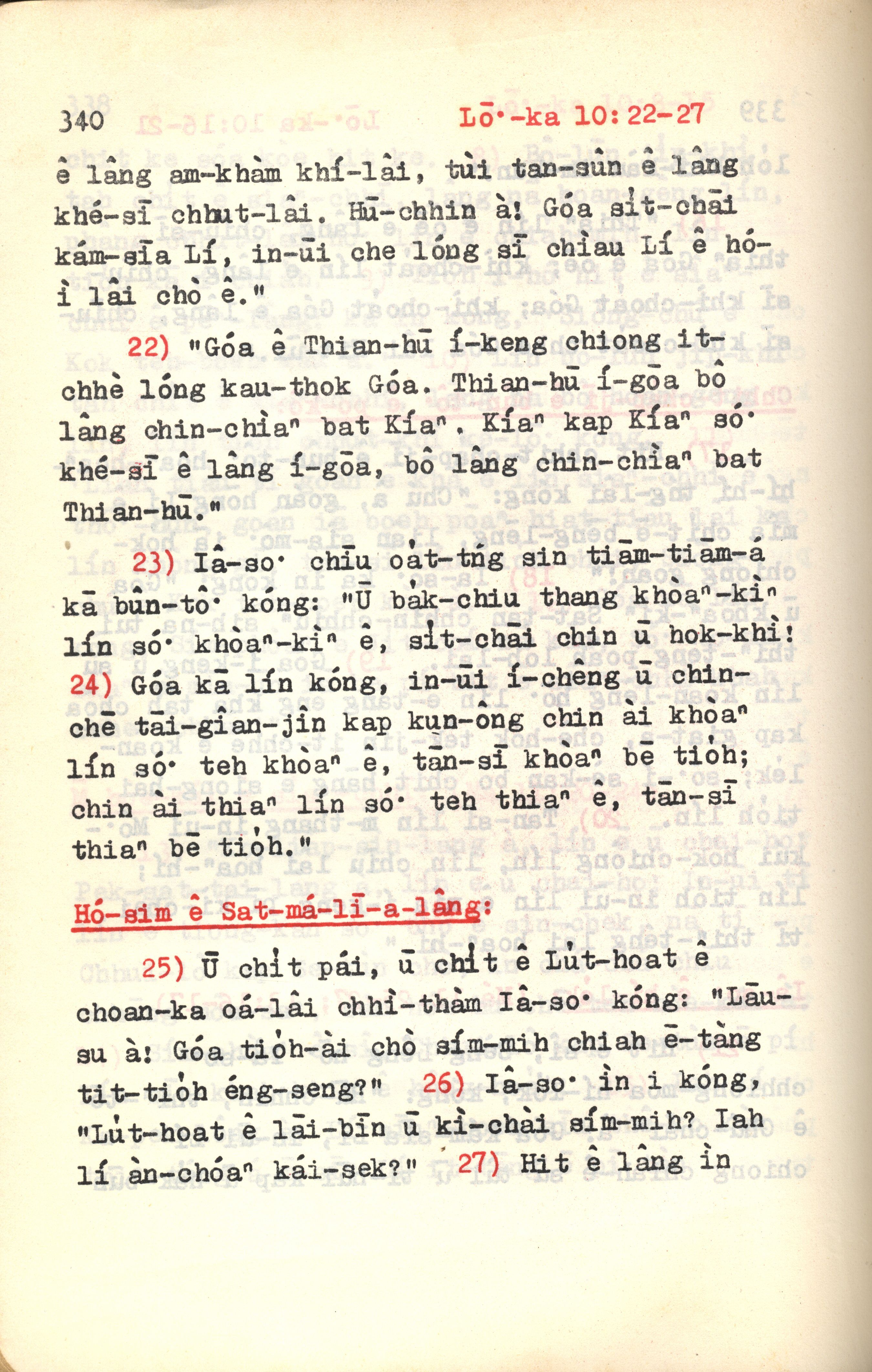1972年新约红皮圣经 路加福音 10 章 22 节到 10 章 27 节