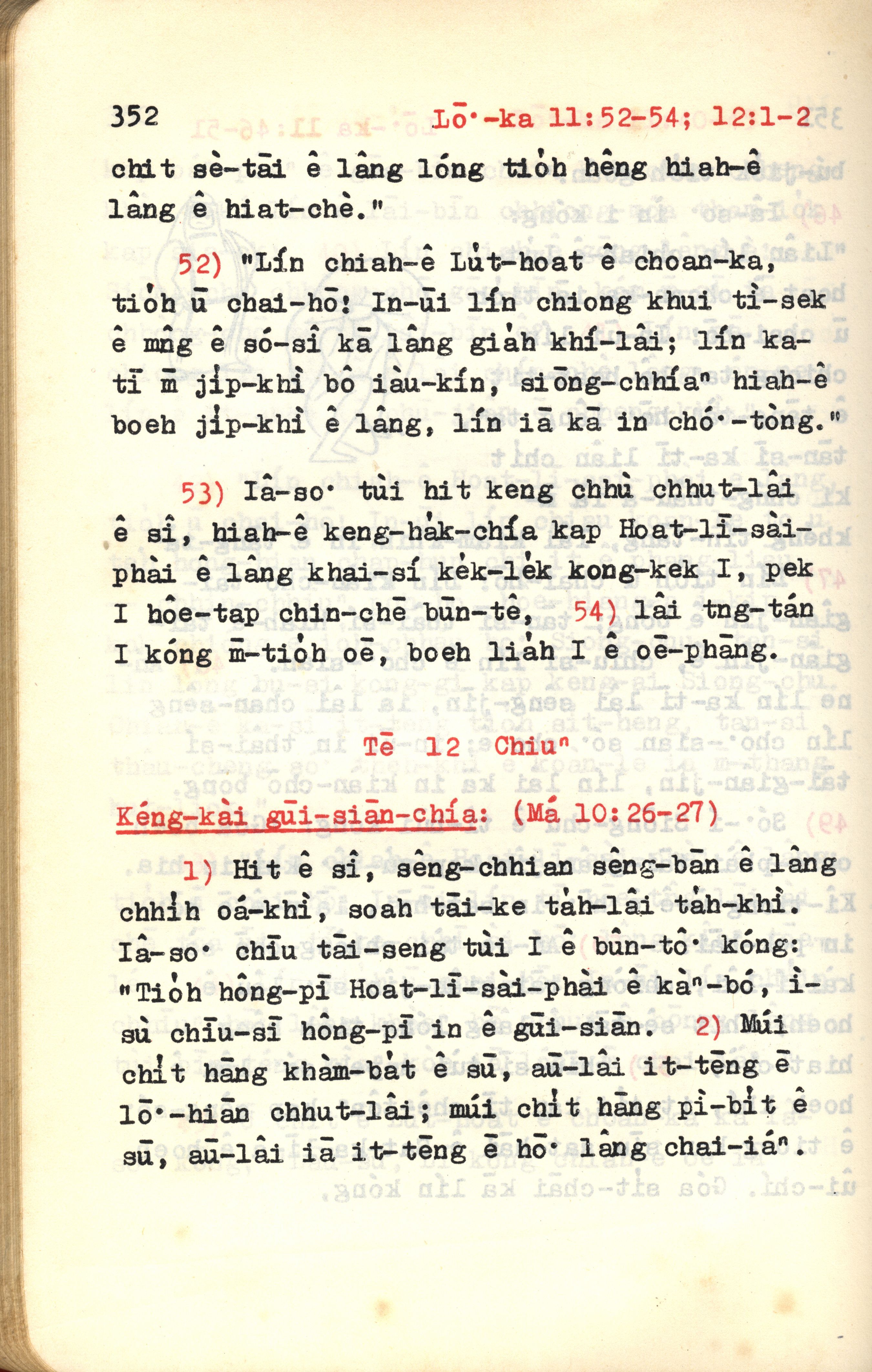 1972年新约红皮圣经 路加福音 11 章 52 节到 12 章 2 节