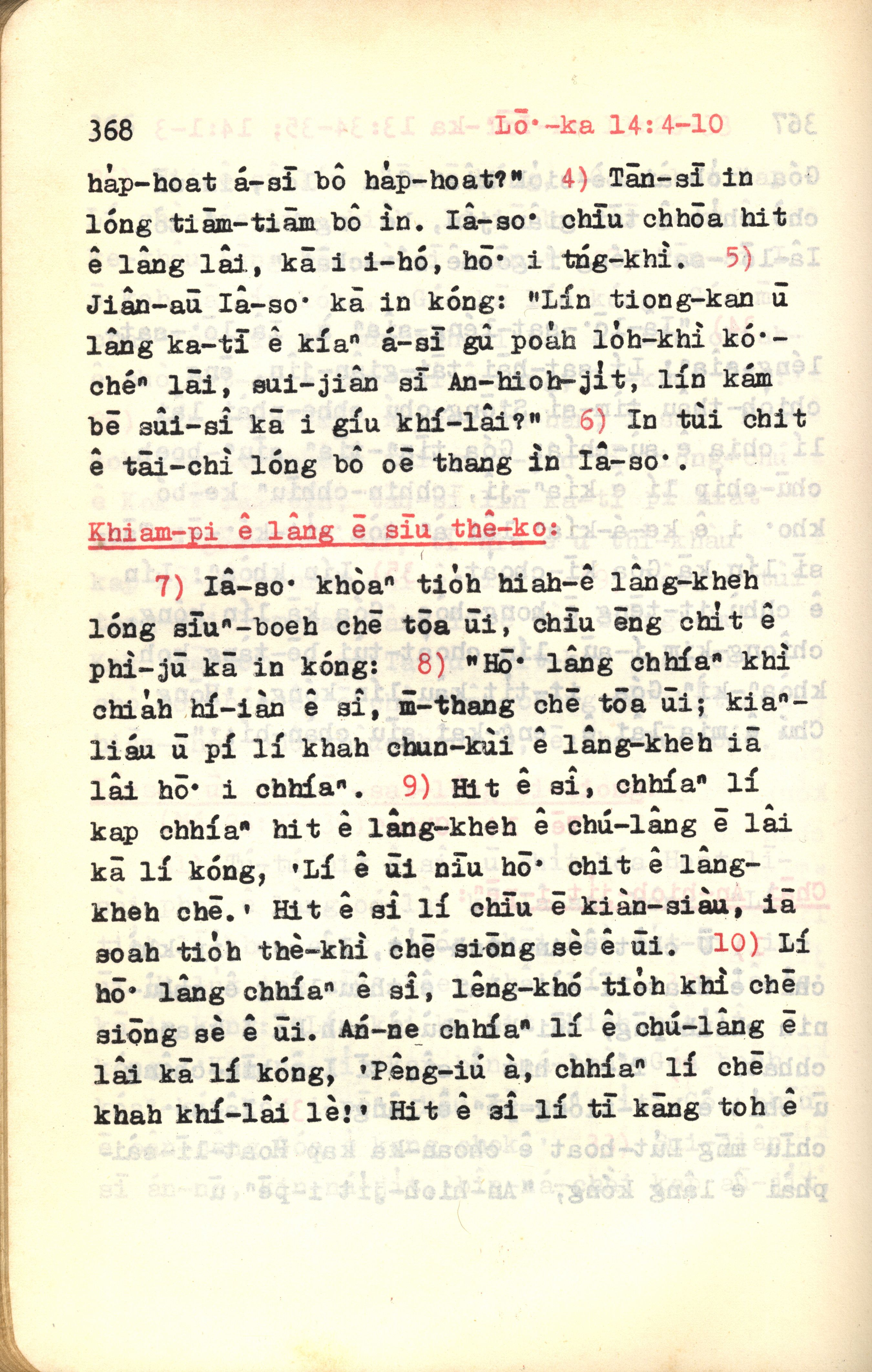 1972年新约红皮圣经 路加福音 14 章 4 节到 14 章 10 节