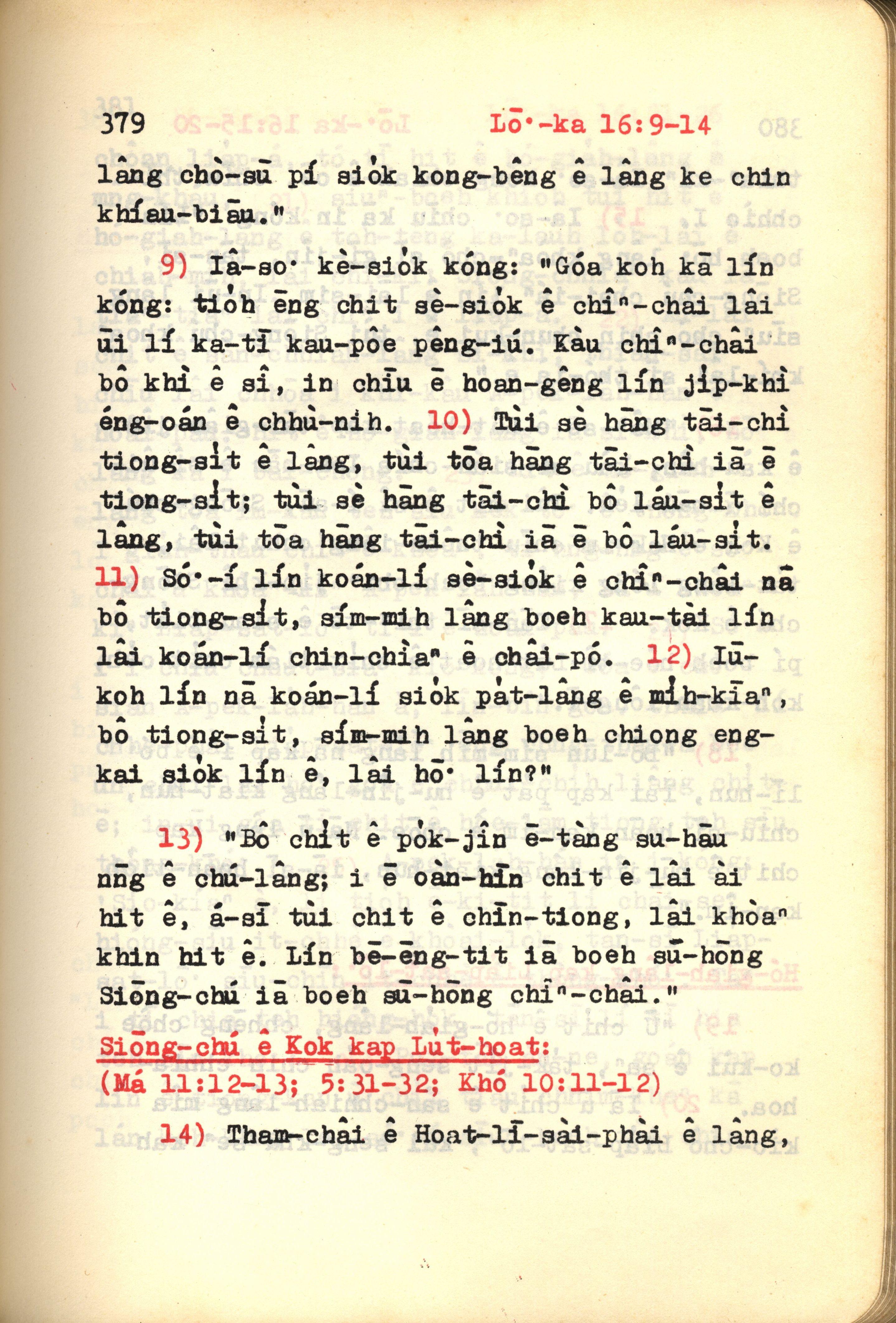 1972年新约红皮圣经 路加福音 16 章 9 节到 16 章 14 节