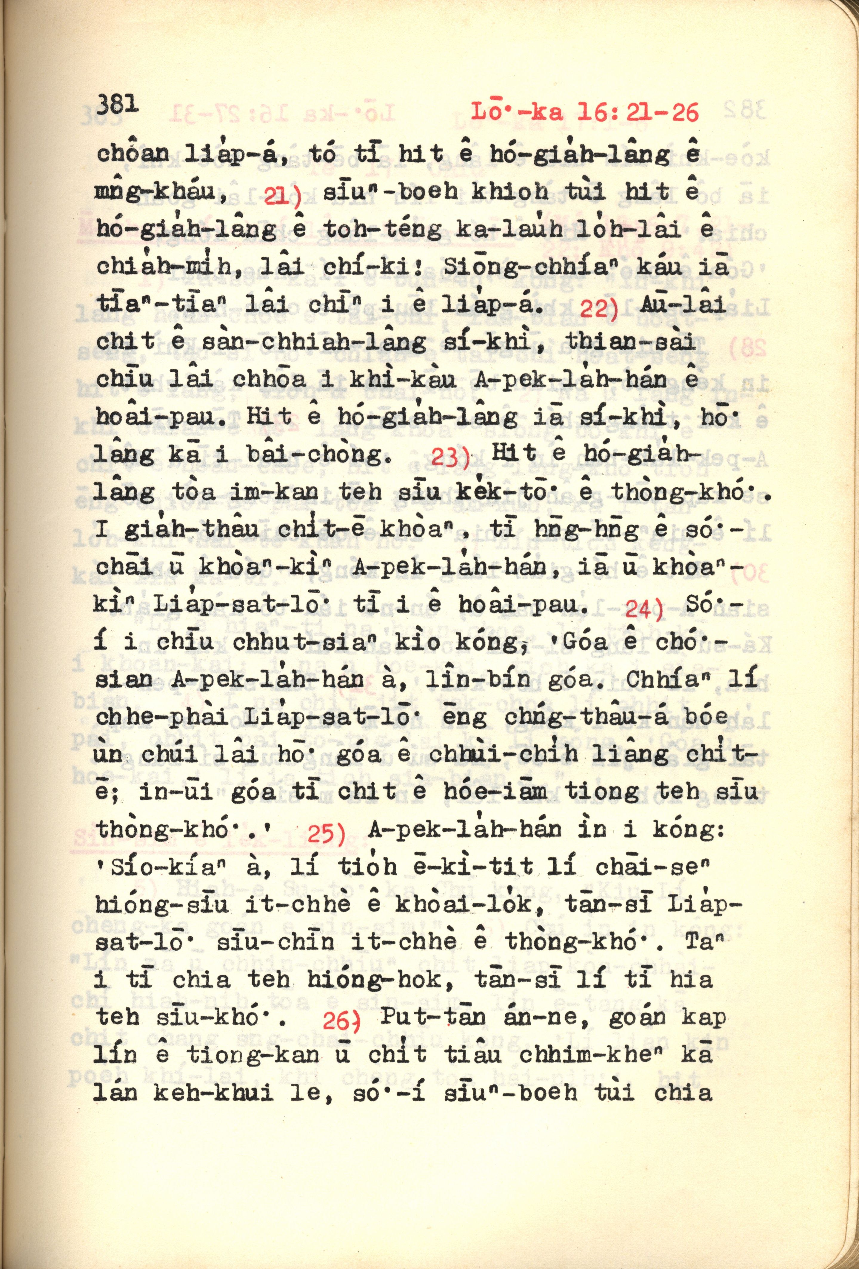 1972年新约红皮圣经 路加福音 16 章 21 节到 16 章 26 节