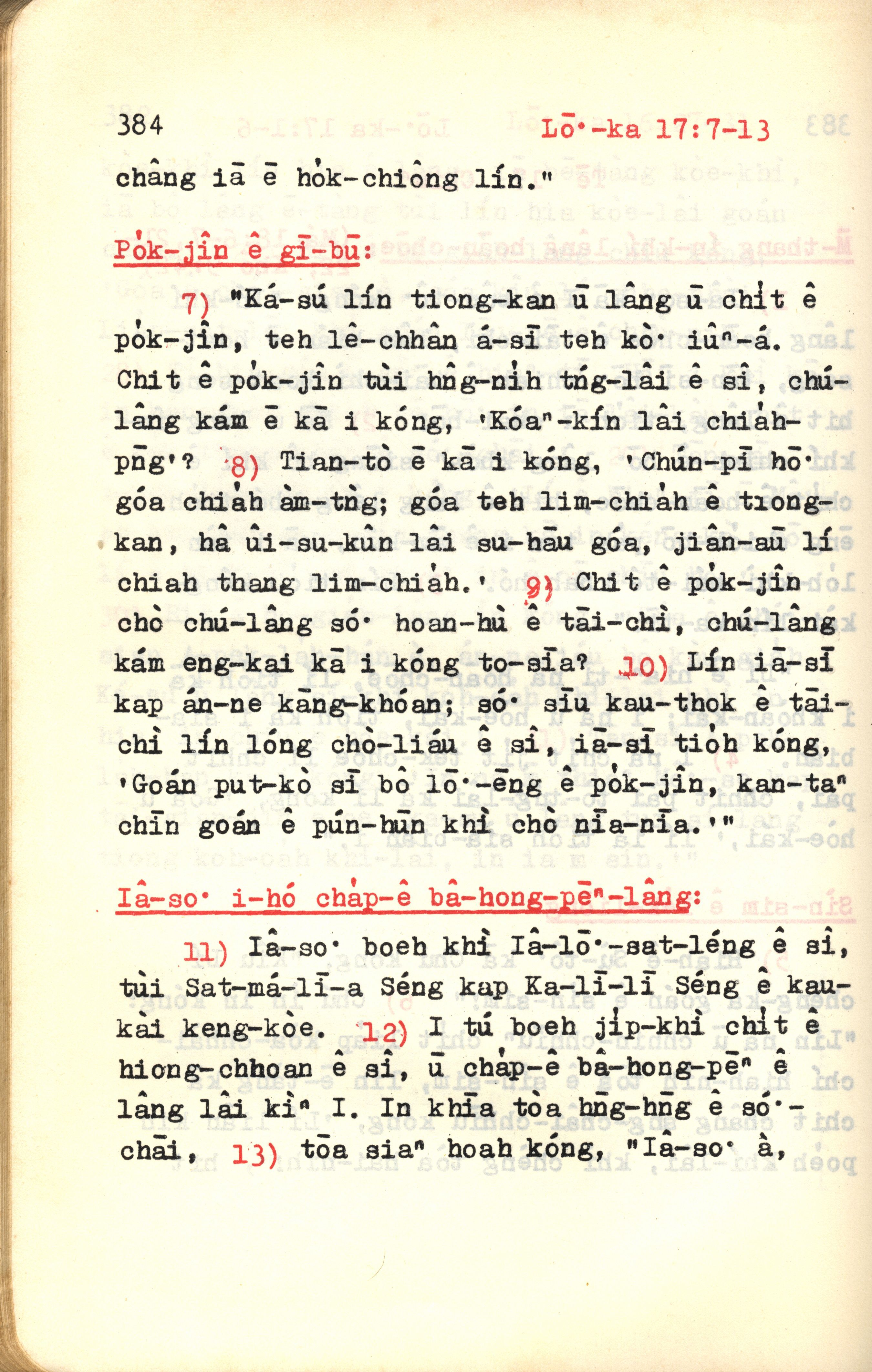 1972年新约红皮圣经 路加福音 17 章 7 节到 17 章 13 节