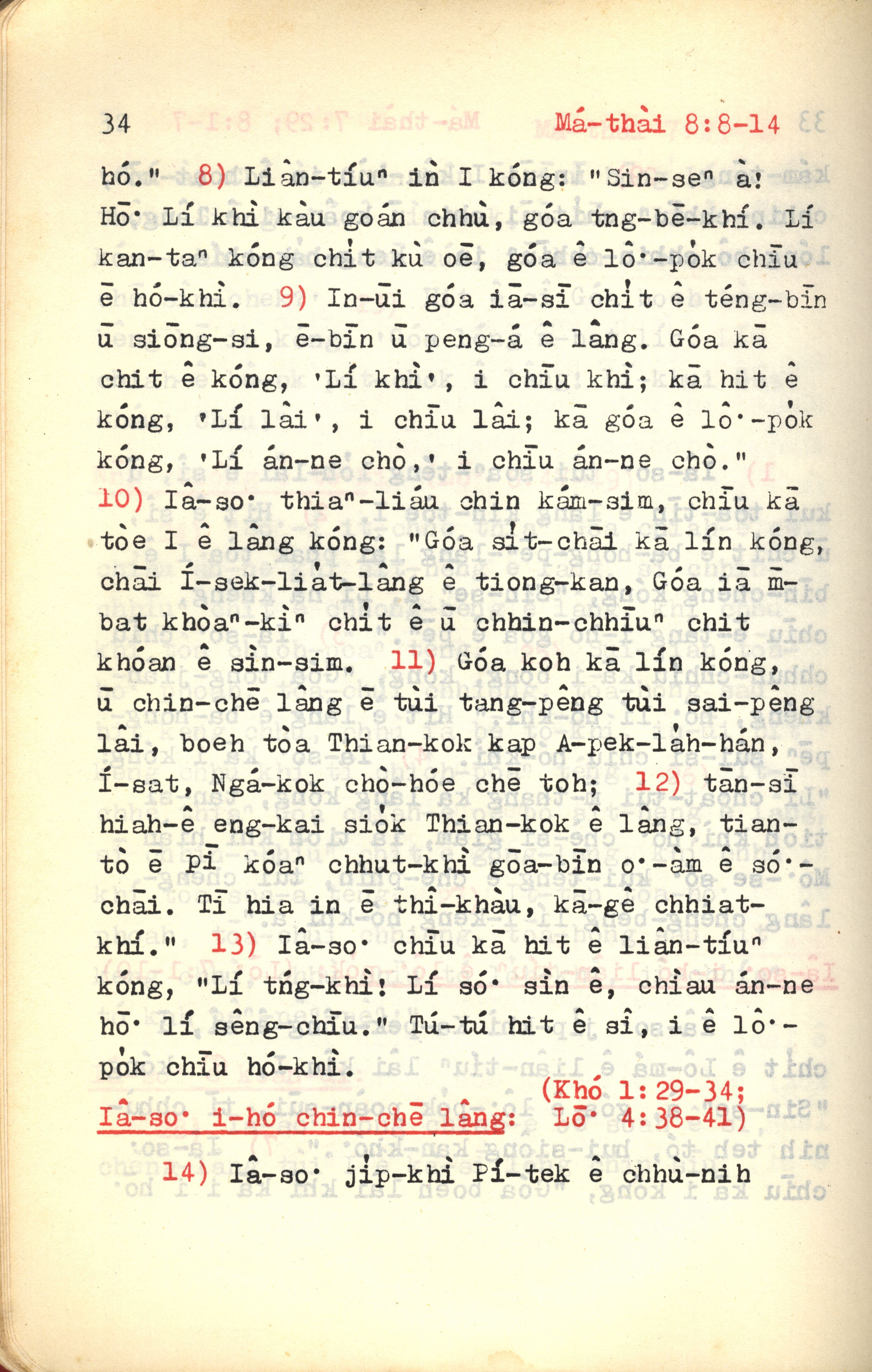 1972年新约红皮圣经 马太福音 8 章 8 节到 8 章 14 节