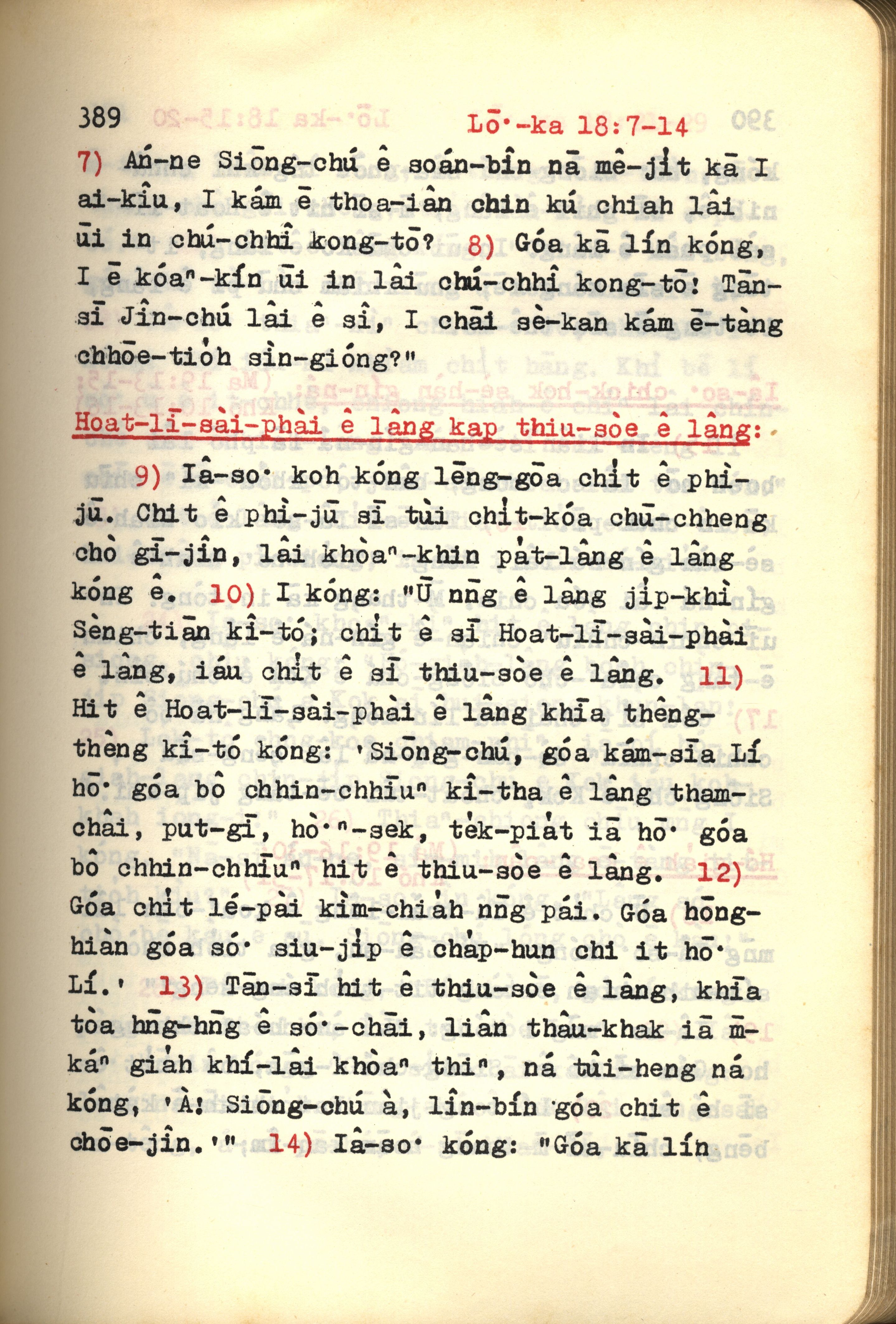 1972年新约红皮圣经 路加福音 18 章 7 节到 18 章 14 节