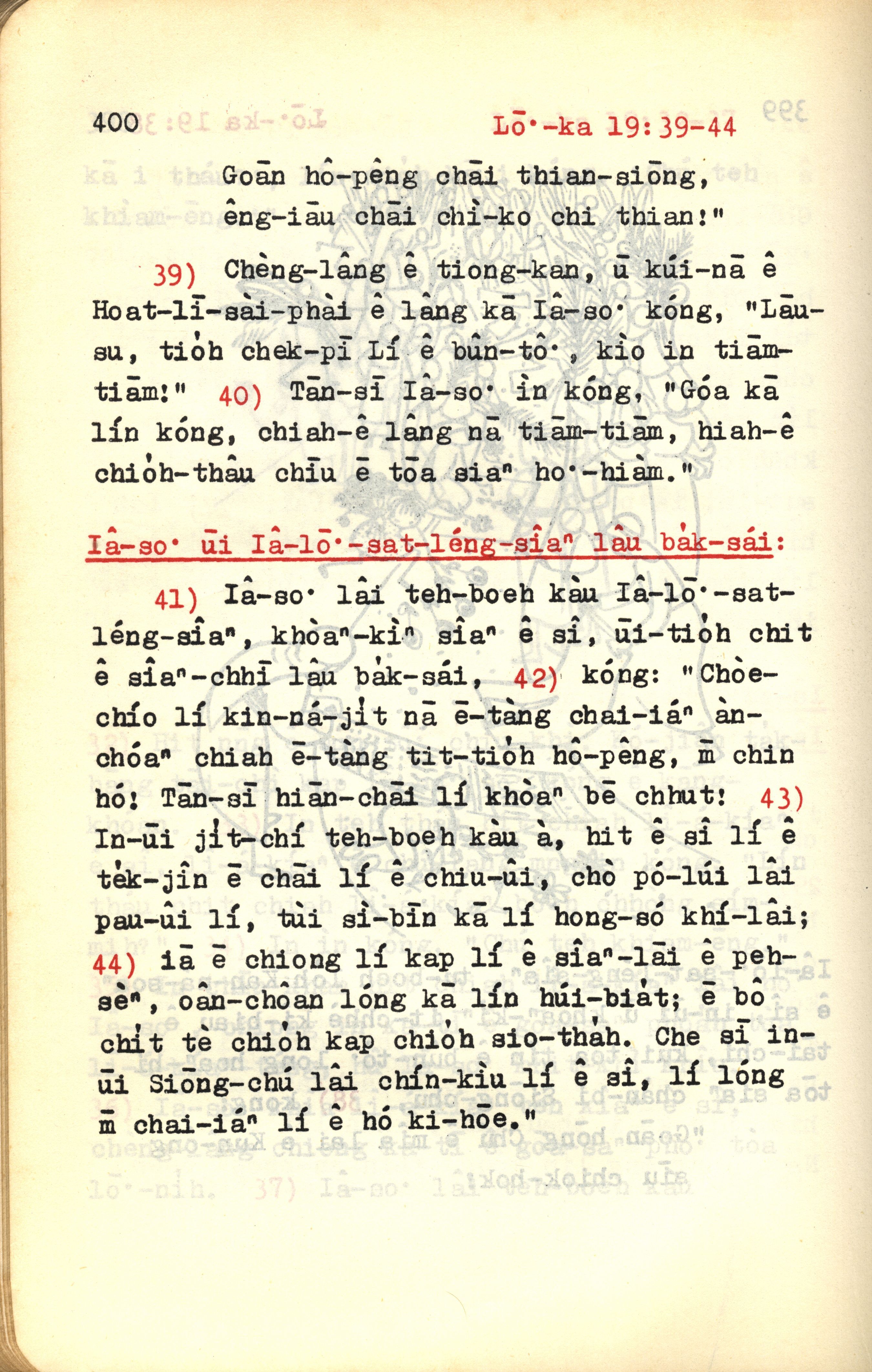1972年新约红皮圣经 路加福音 19 章 39 节到 19 章 44 节