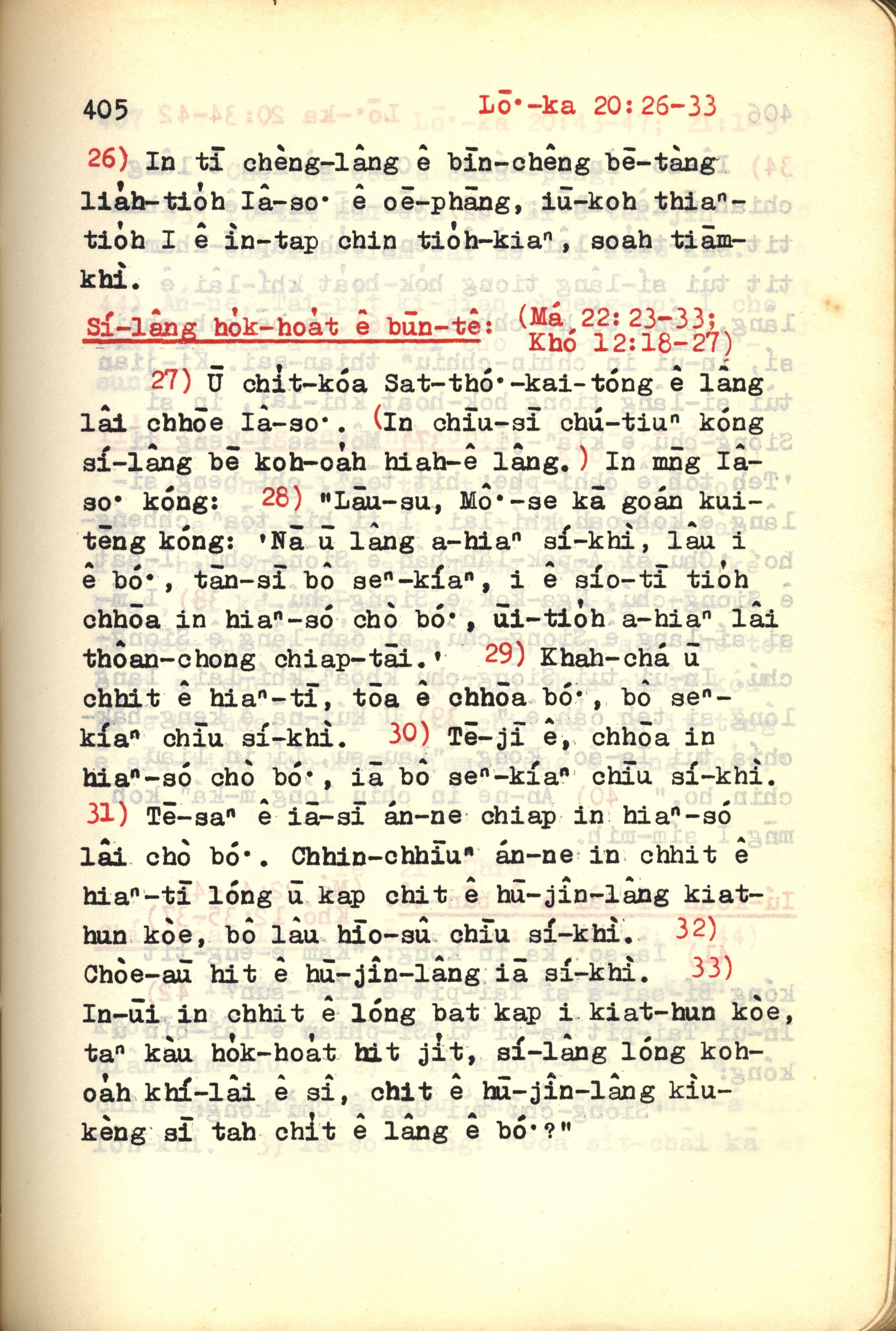 1972年新约红皮圣经 路加福音 20 章 26 节到 20 章 33 节