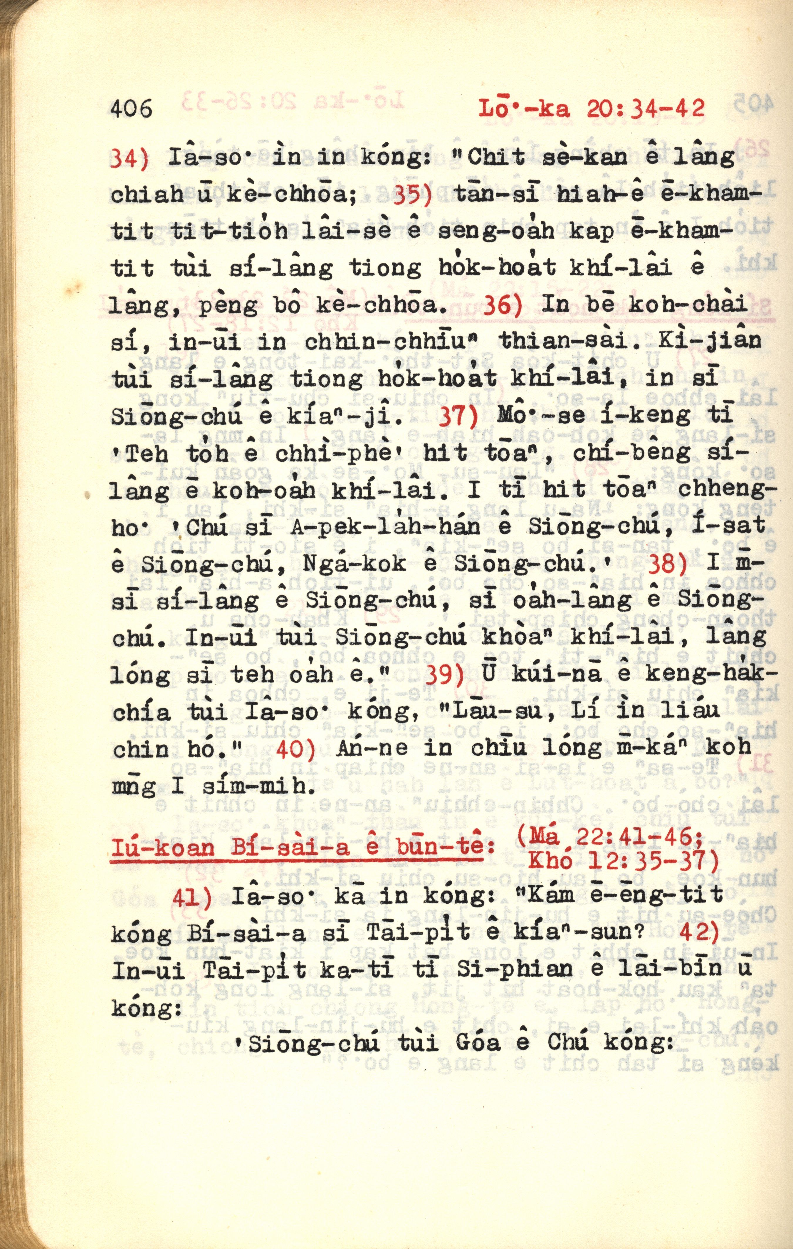 1972年新约红皮圣经 路加福音 20 章 34 节到 20 章 42 节