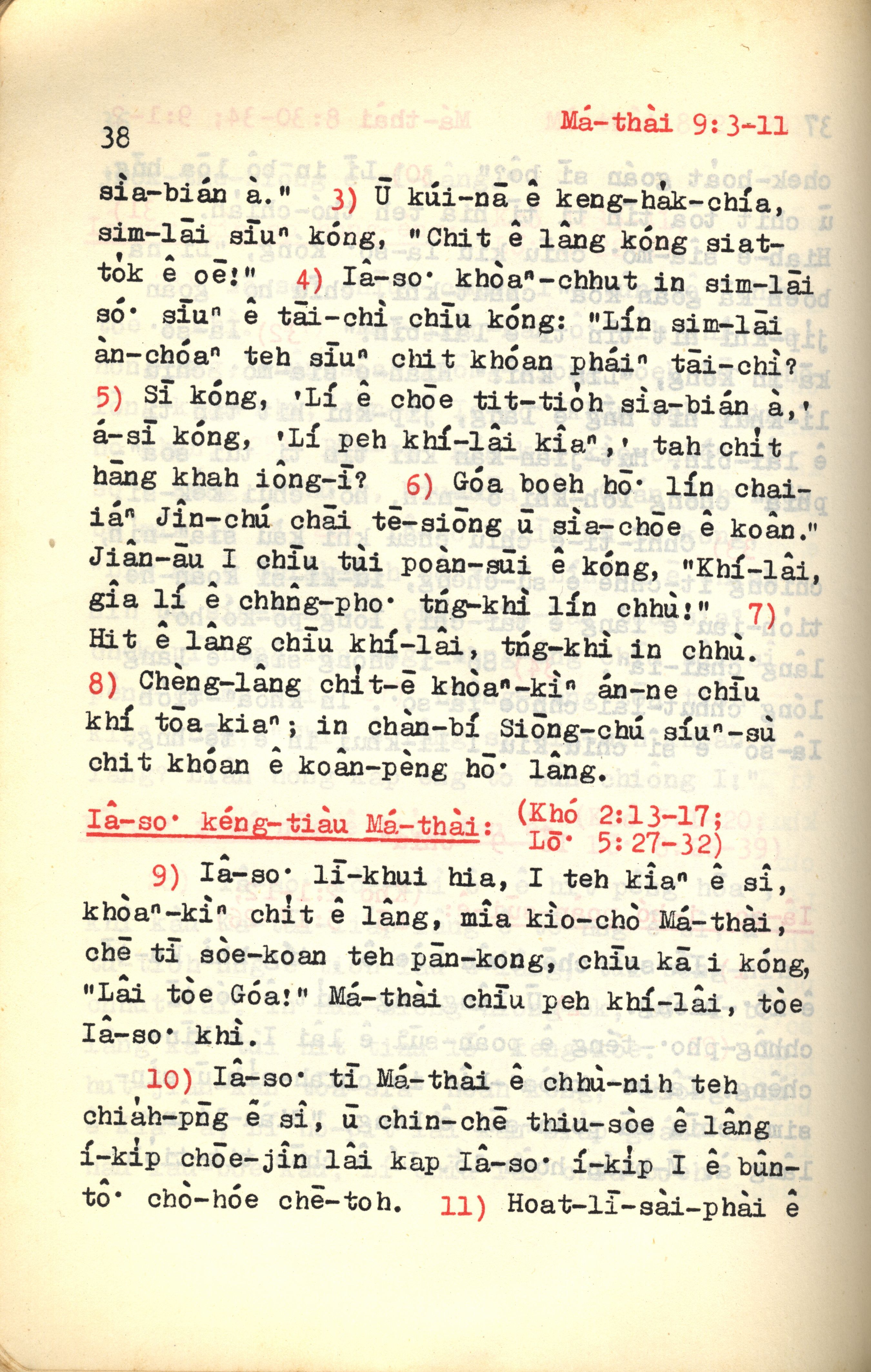 1972年新约红皮圣经 马太福音 9 章 3 节到 9 章 11 节