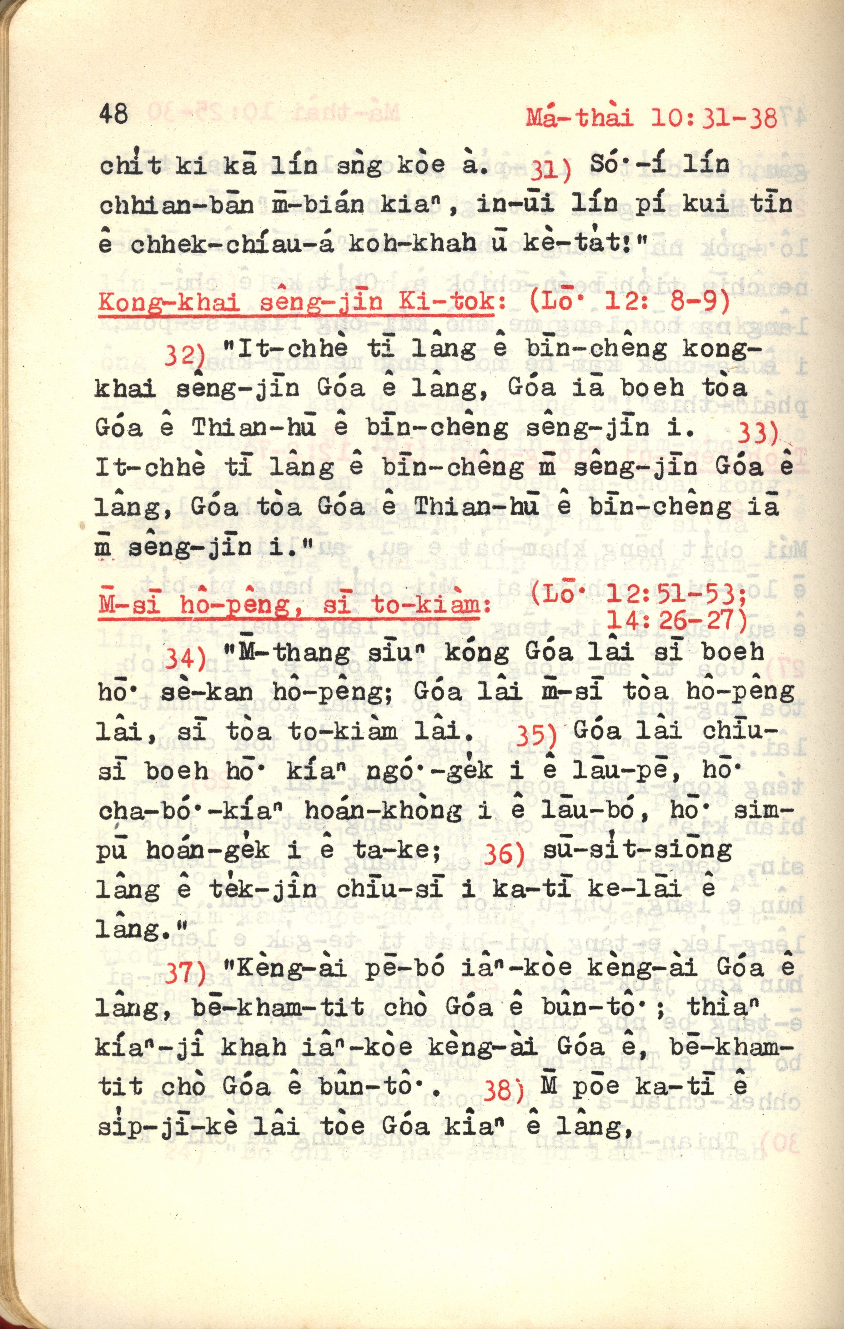 1972年新约红皮圣经 马太福音 10 章 31 节到 10 章 38 节
