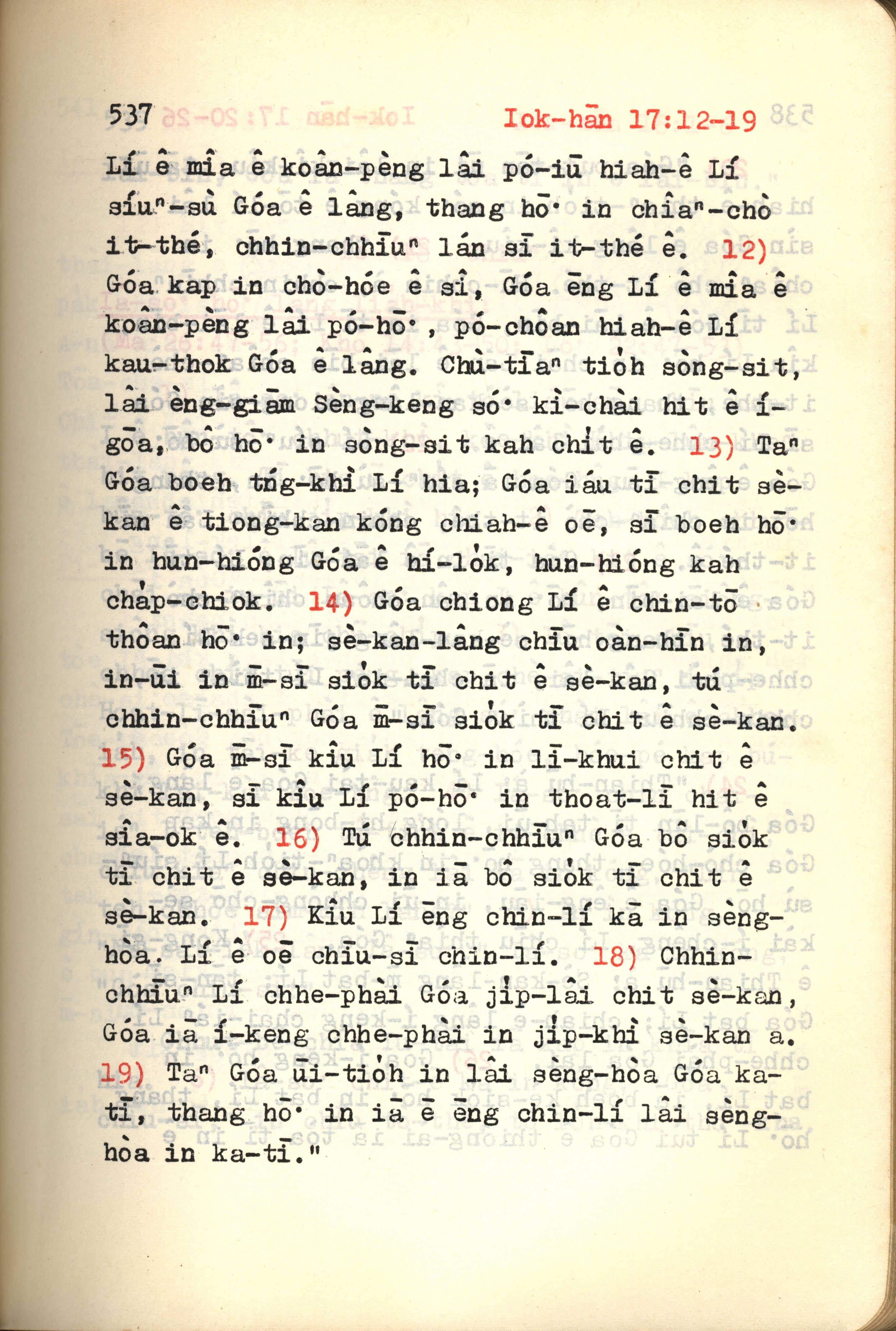 1972年新约红皮圣经 约翰福音 17 章 12 节到 17 章 19 节