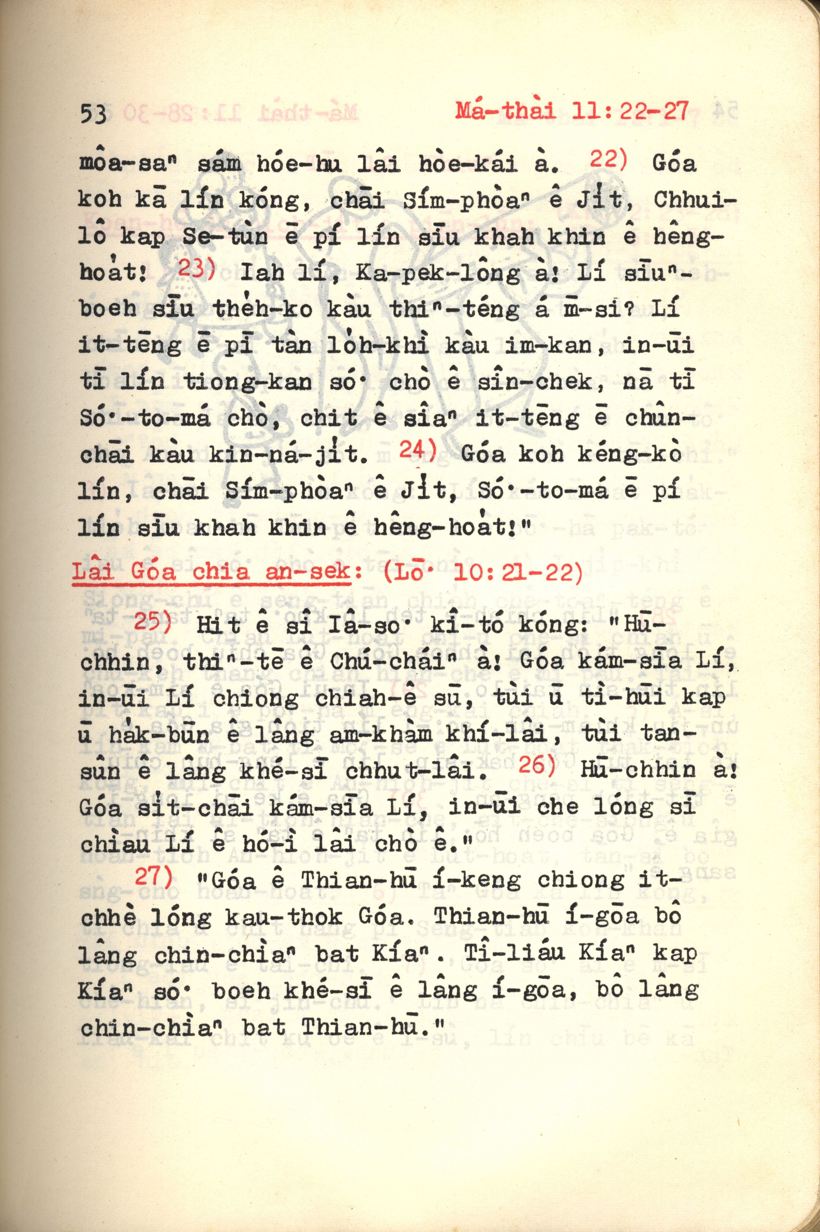 1972年新约红皮圣经 马太福音 11 章 22 节到 11 章 27 节