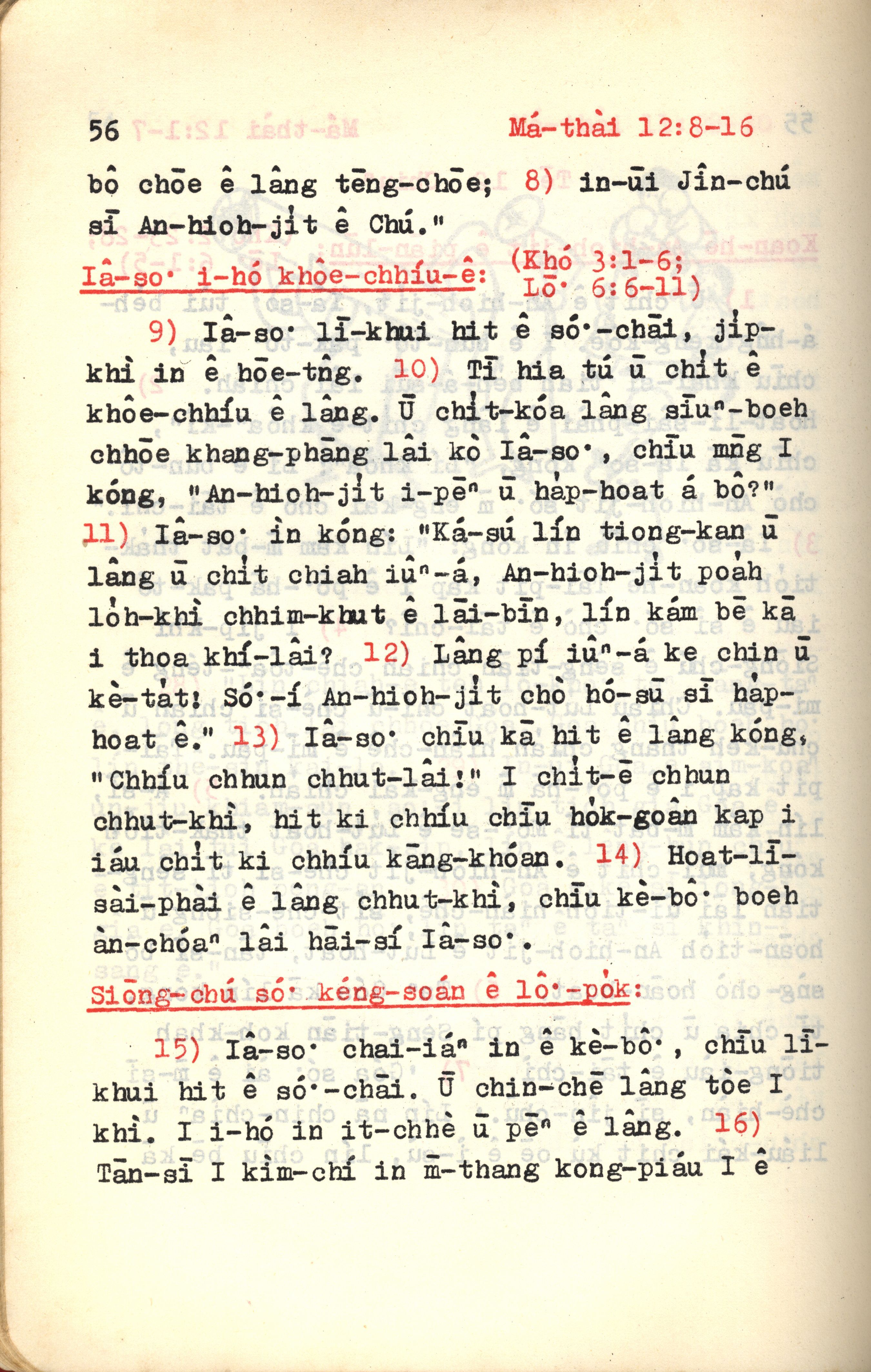 1972年新约红皮圣经 马太福音 12 章 8 节到 12 章 16 节