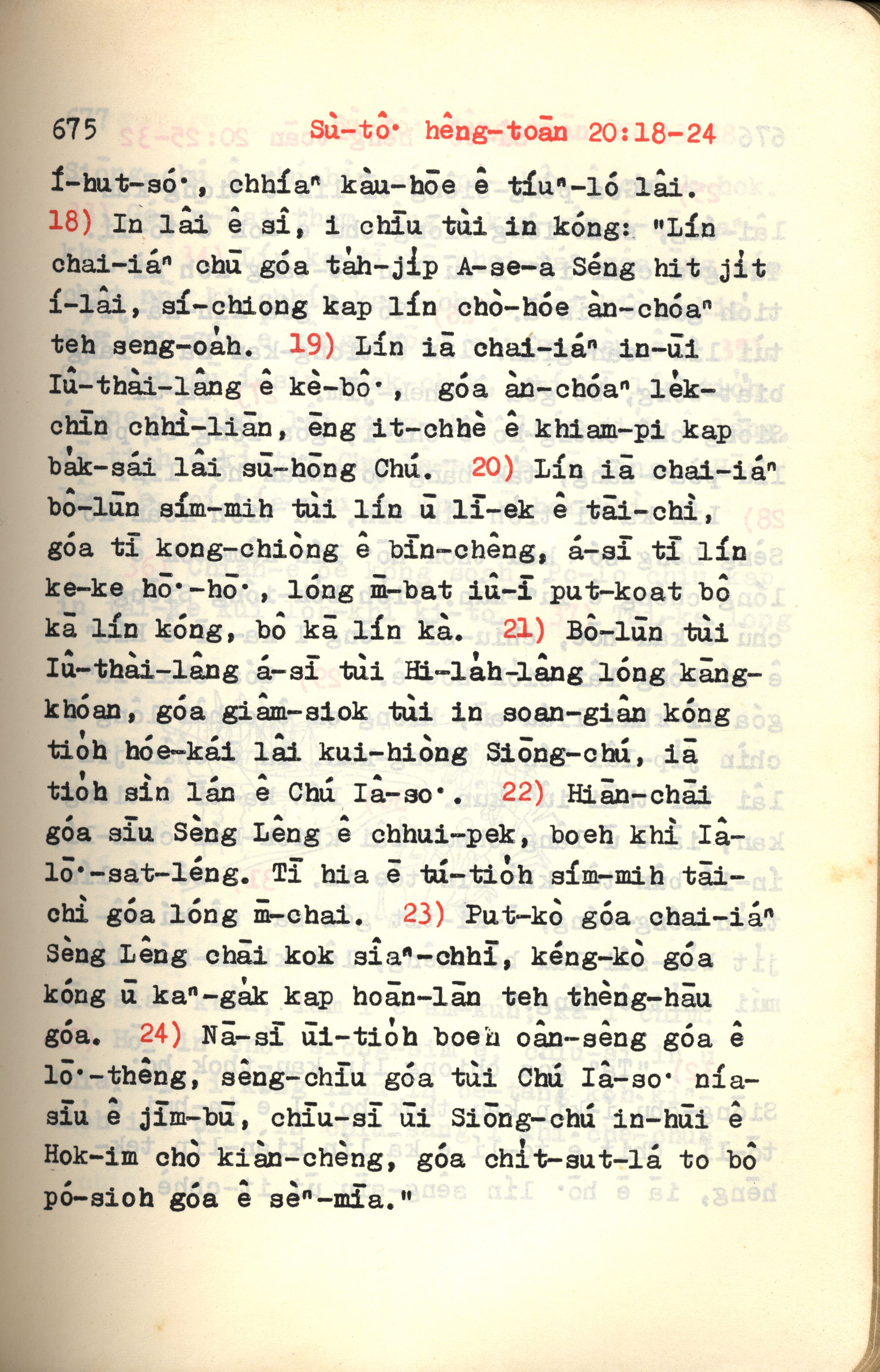 1972年新约红皮圣经 使徒行传 20 章 18 节到 20 章 24 节