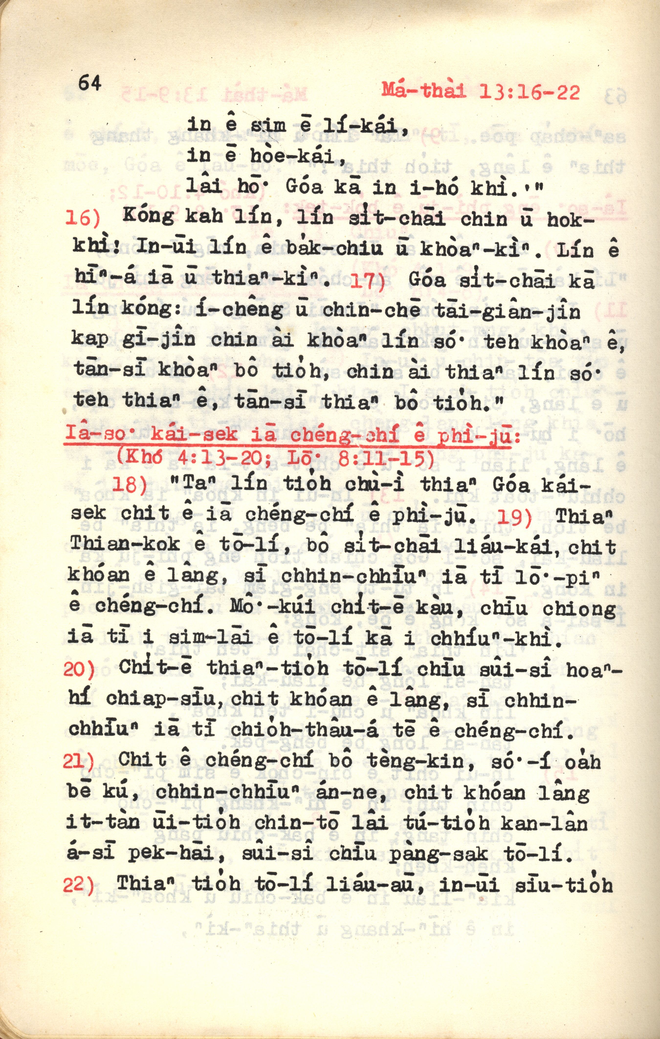 1972年新约红皮圣经 马太福音 13 章 16 节到 13 章 22 节