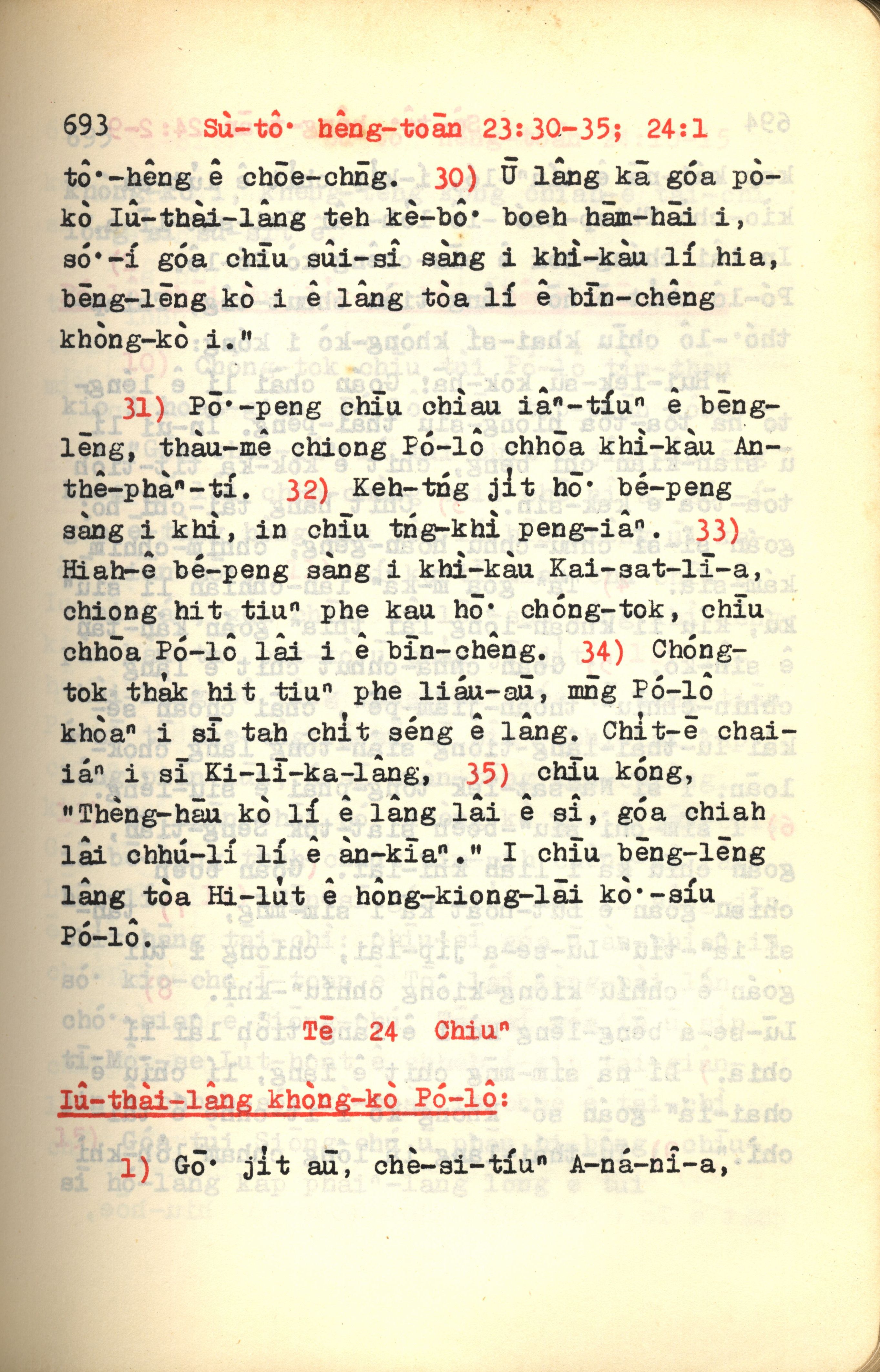 1972年新约红皮圣经 使徒行传 23 章 30 节到 24 章 1 节