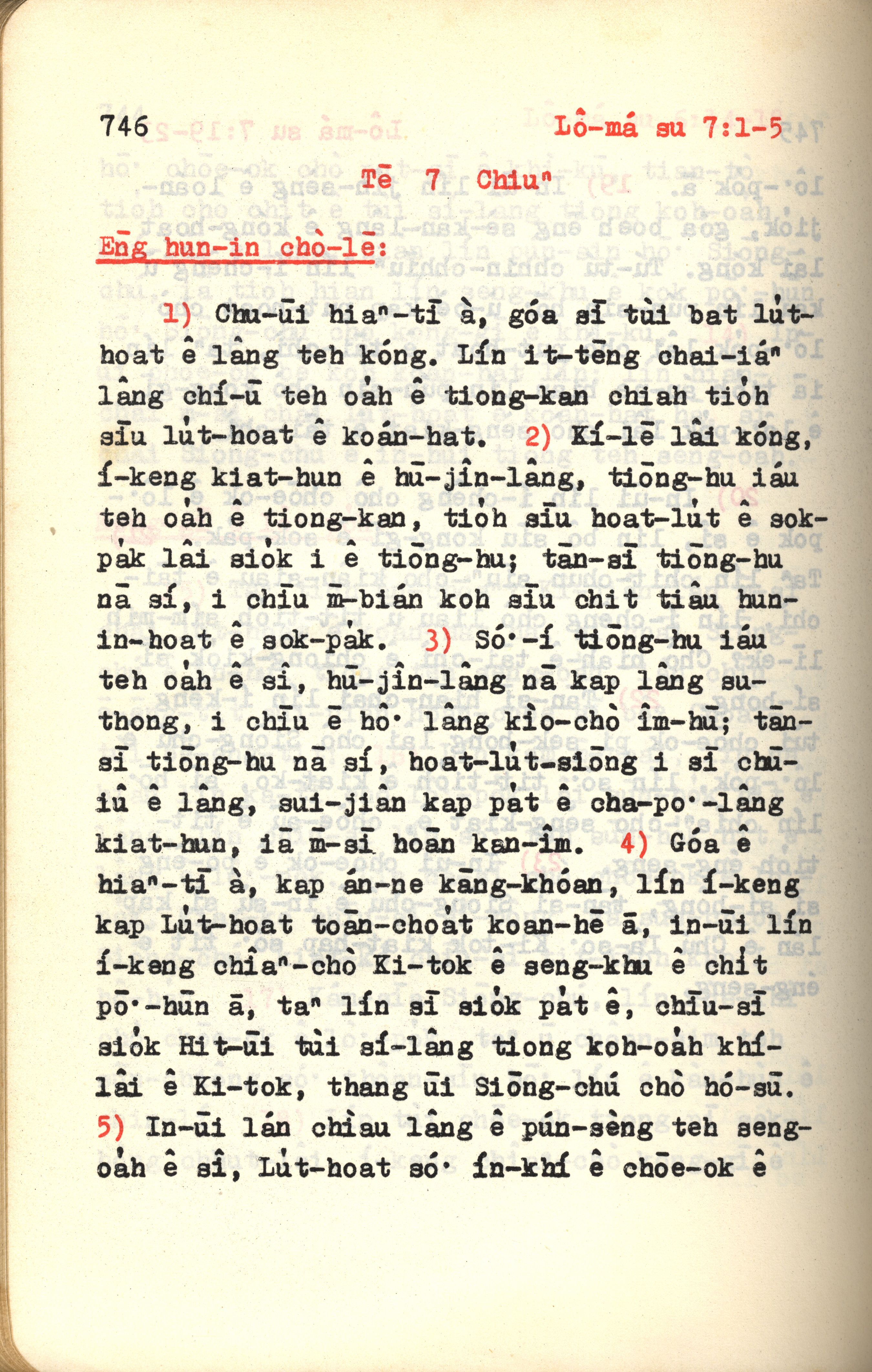 1972年新约红皮圣经 罗马书 7 章 1 节到 7 章 5 节