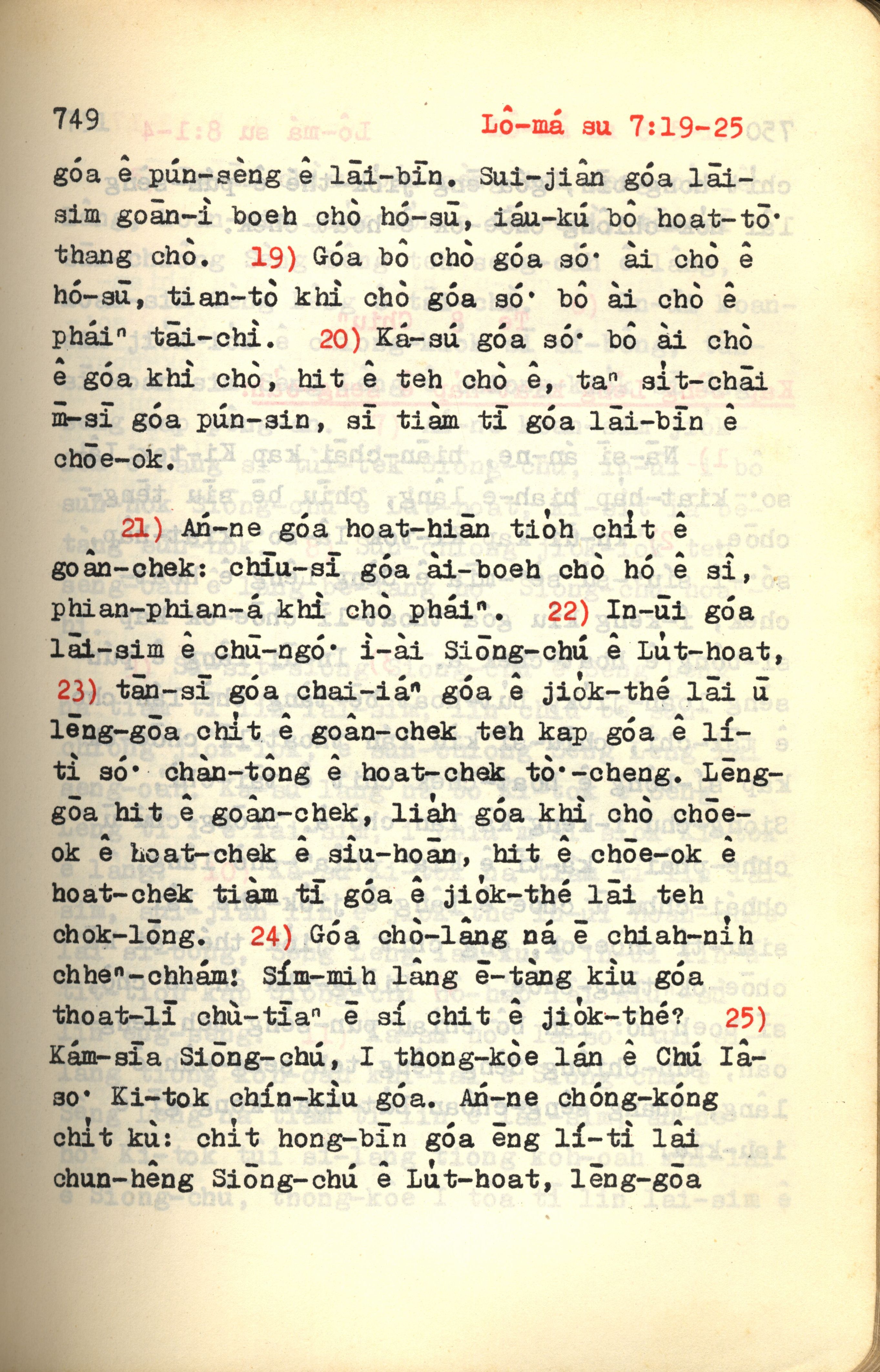 1972年新约红皮圣经 罗马书 7 章 19 节到 7 章 25 节