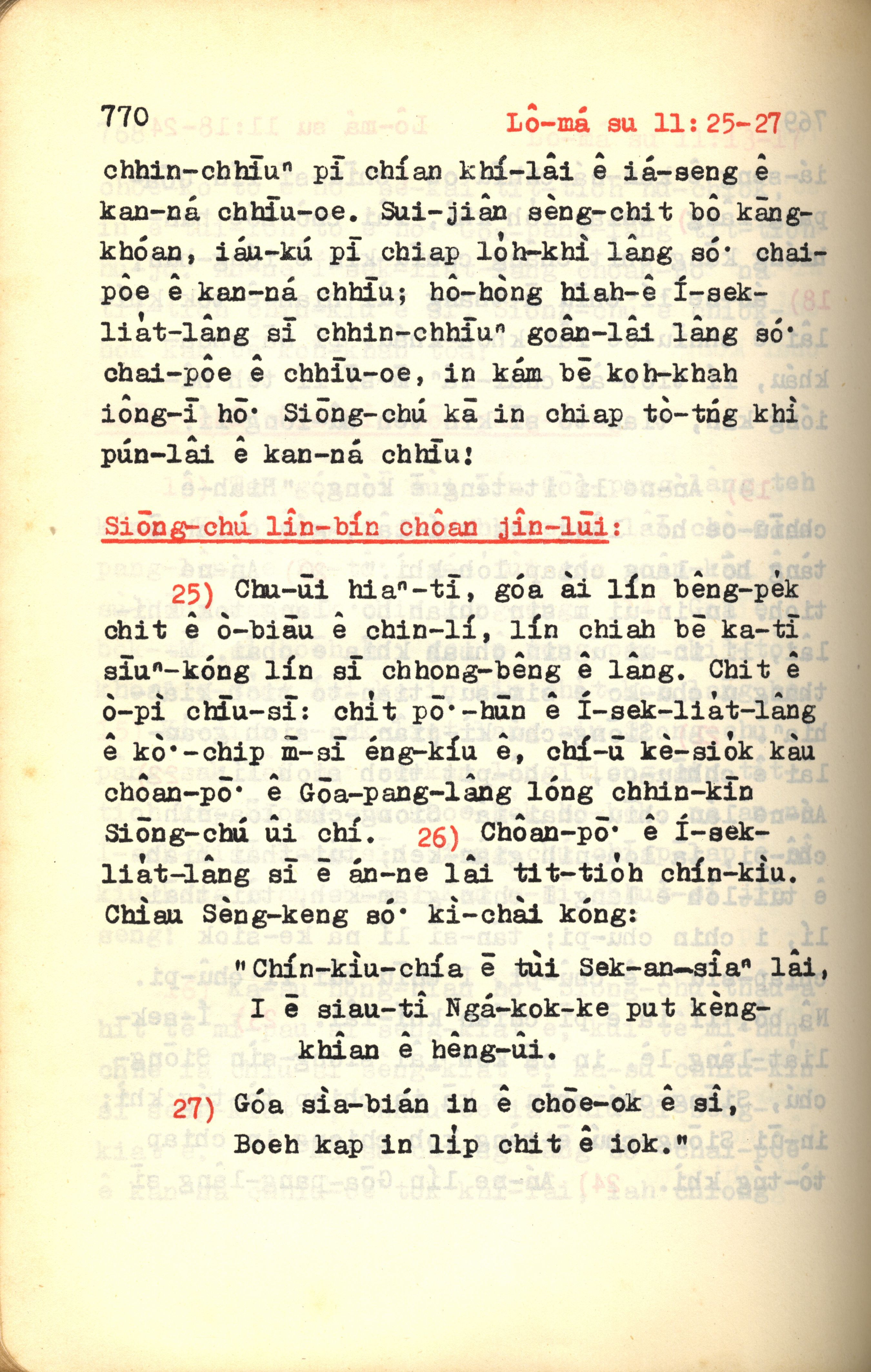 1972年新约红皮圣经 罗马书 11 章 25 节到 11 章 27 节