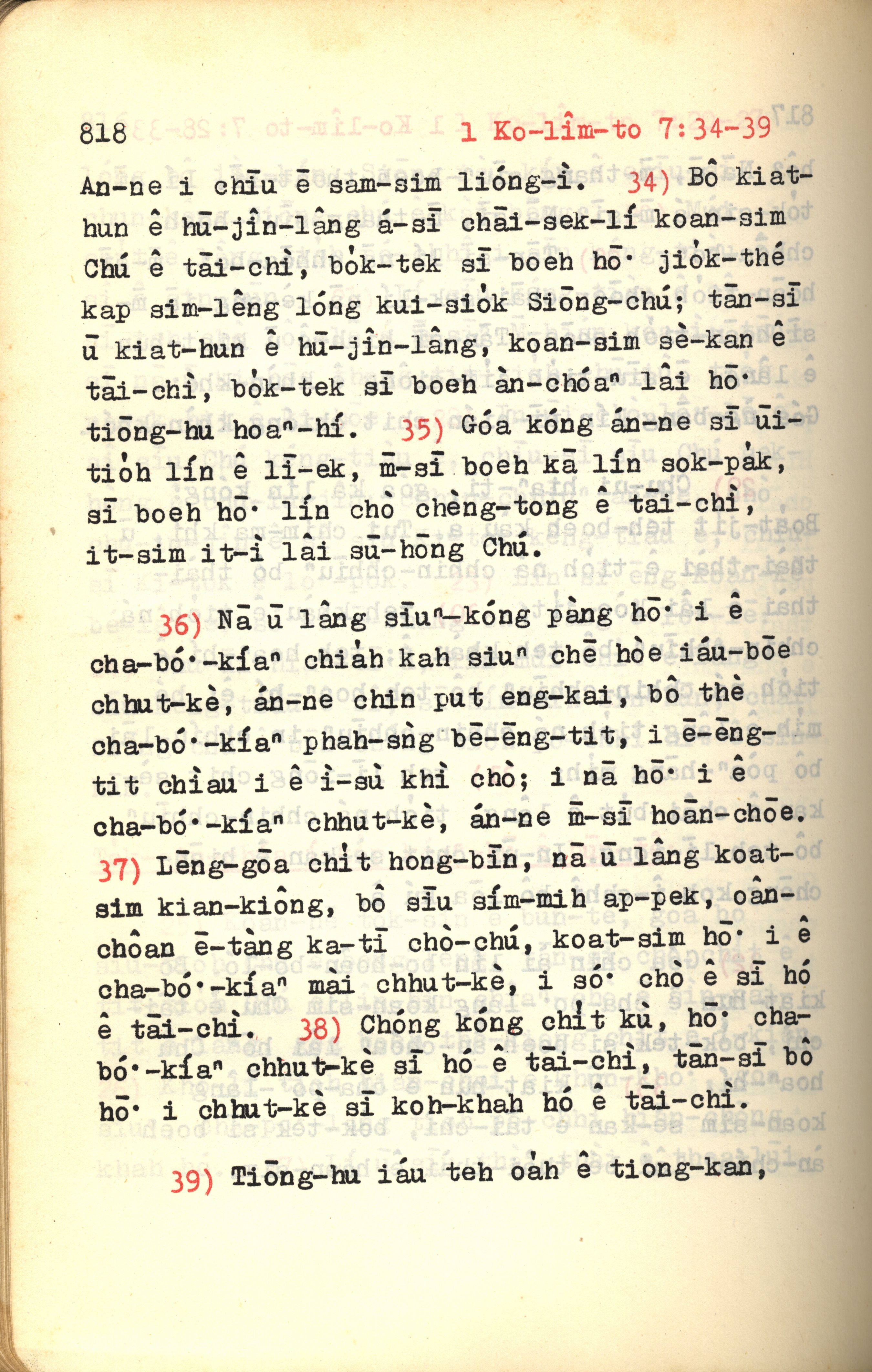 1972年新约红皮圣经 哥林多前书 7 章 34 节到 7 章 39 节