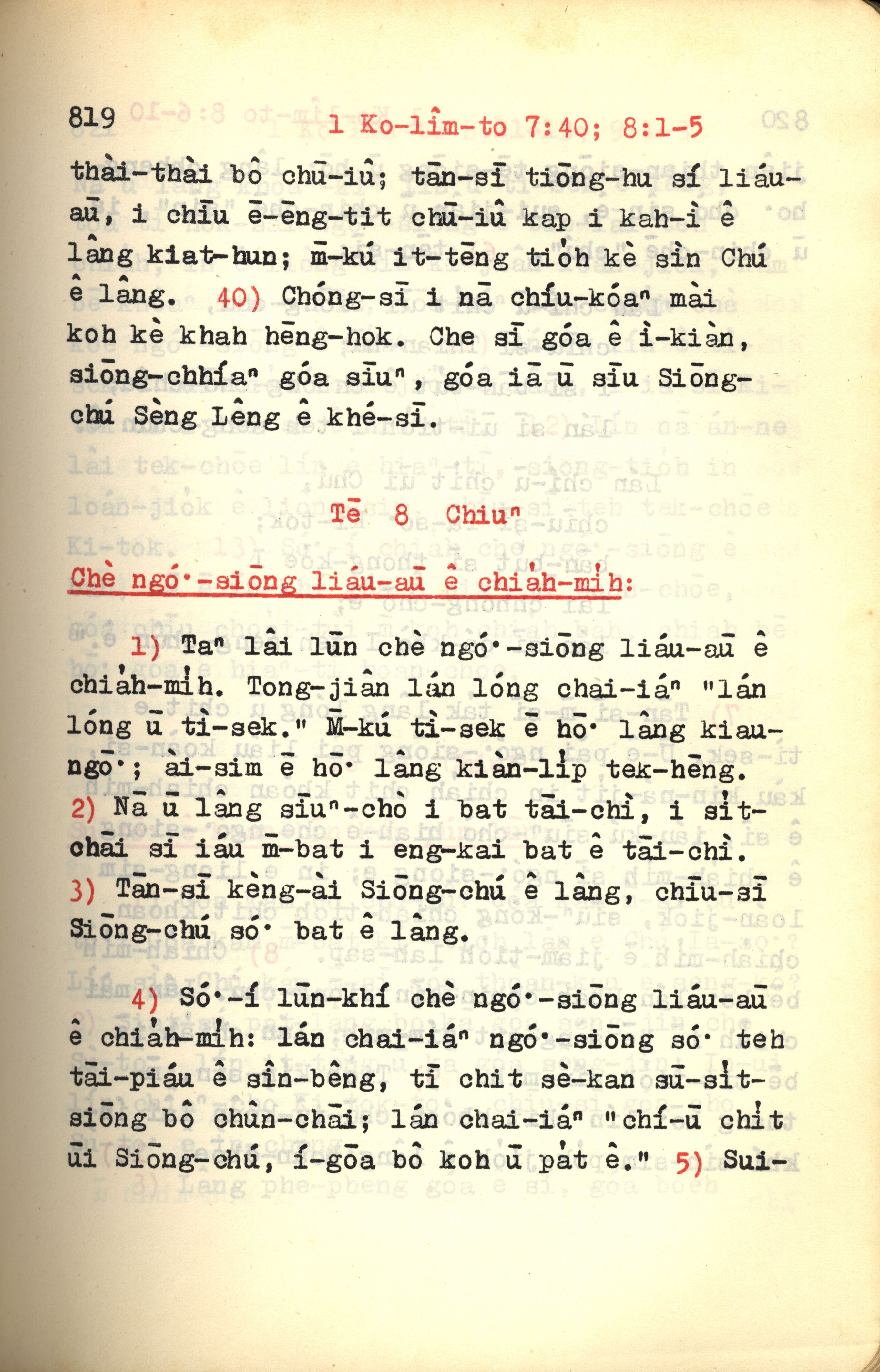 1972年新约红皮圣经 哥林多前书 7 章 40 节到 8 章 5 节