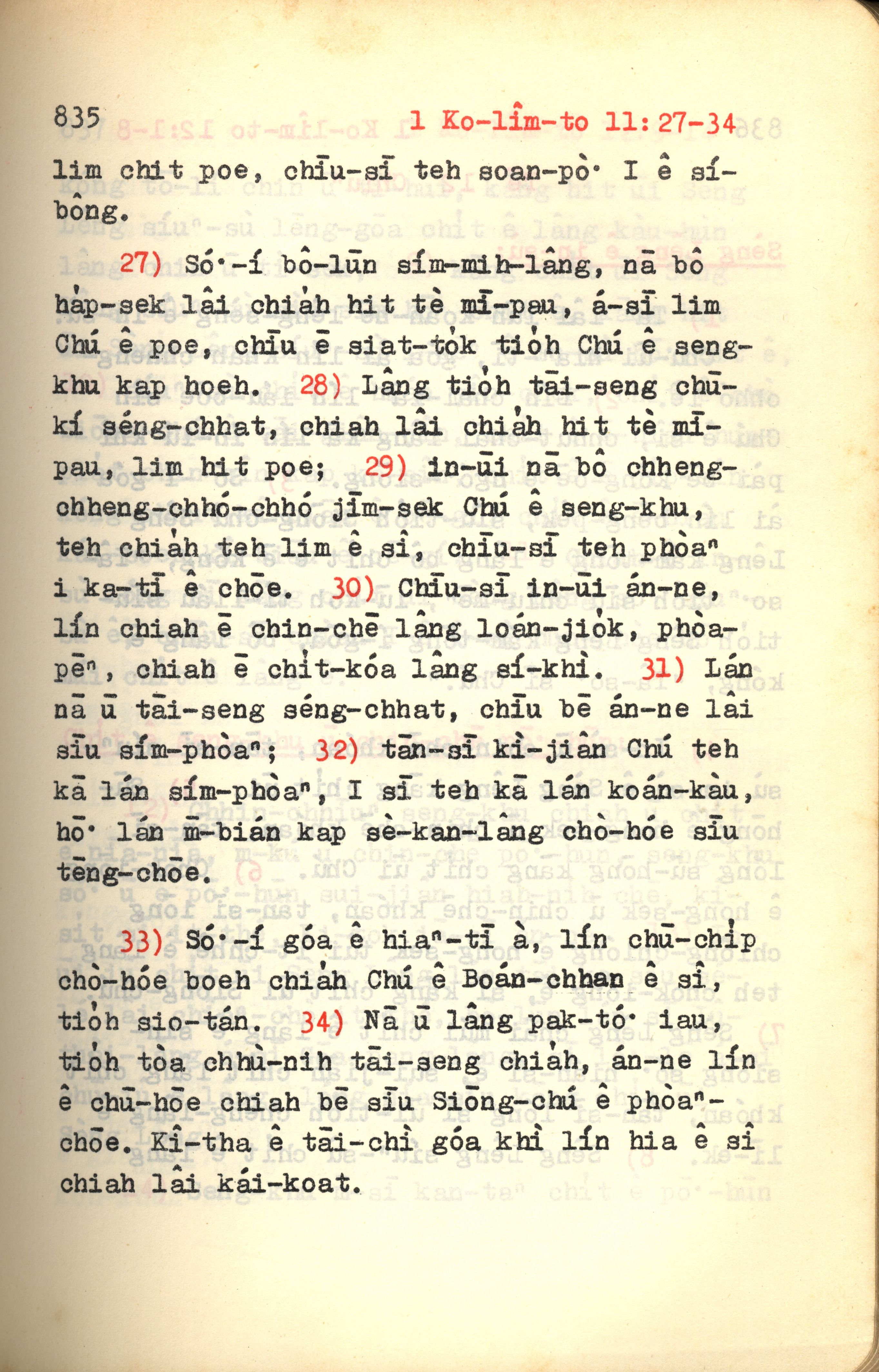 1972年新约红皮圣经 哥林多前书 11 章 27 节到 11 章 34 节