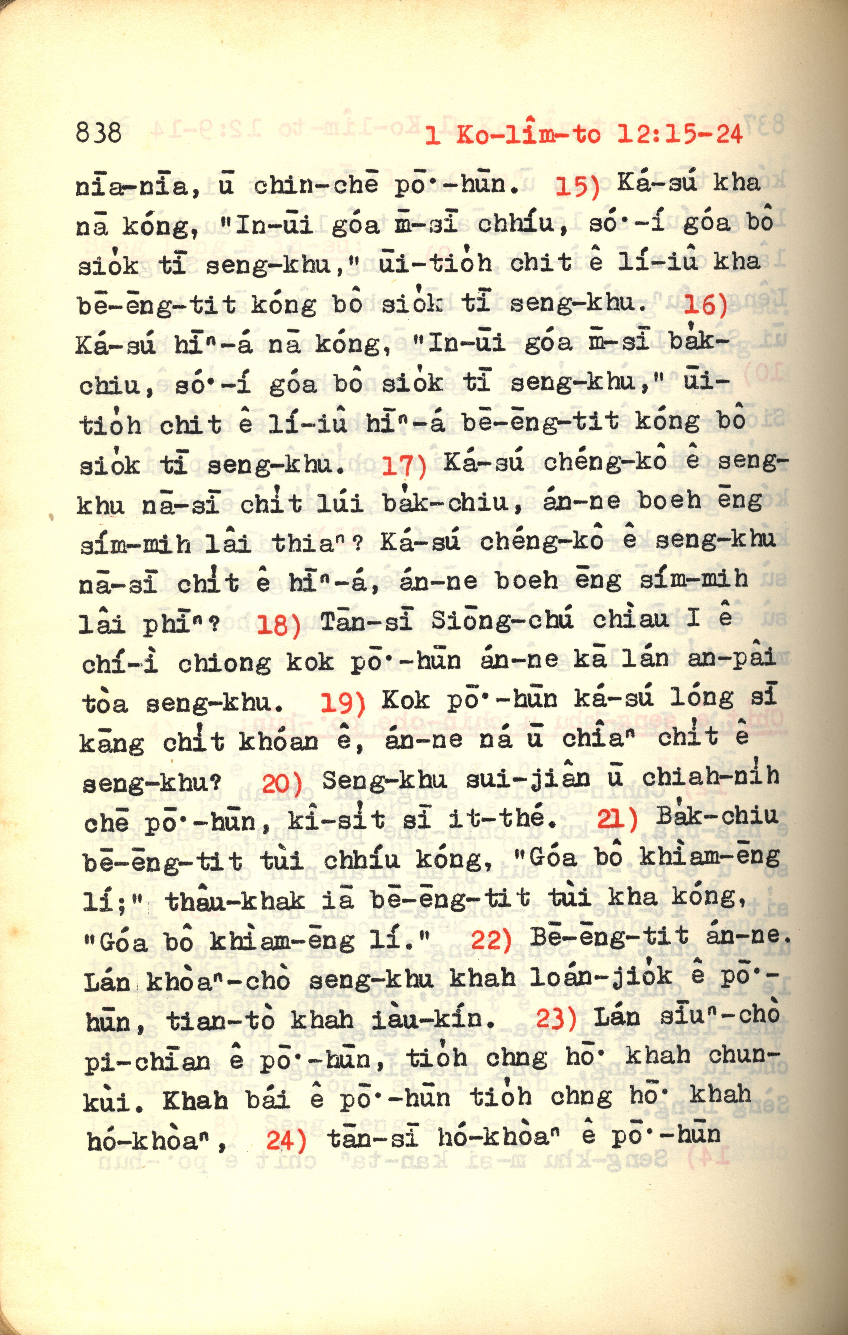 1972年新约红皮圣经 哥林多前书 12 章 15 节到 12 章 24 节