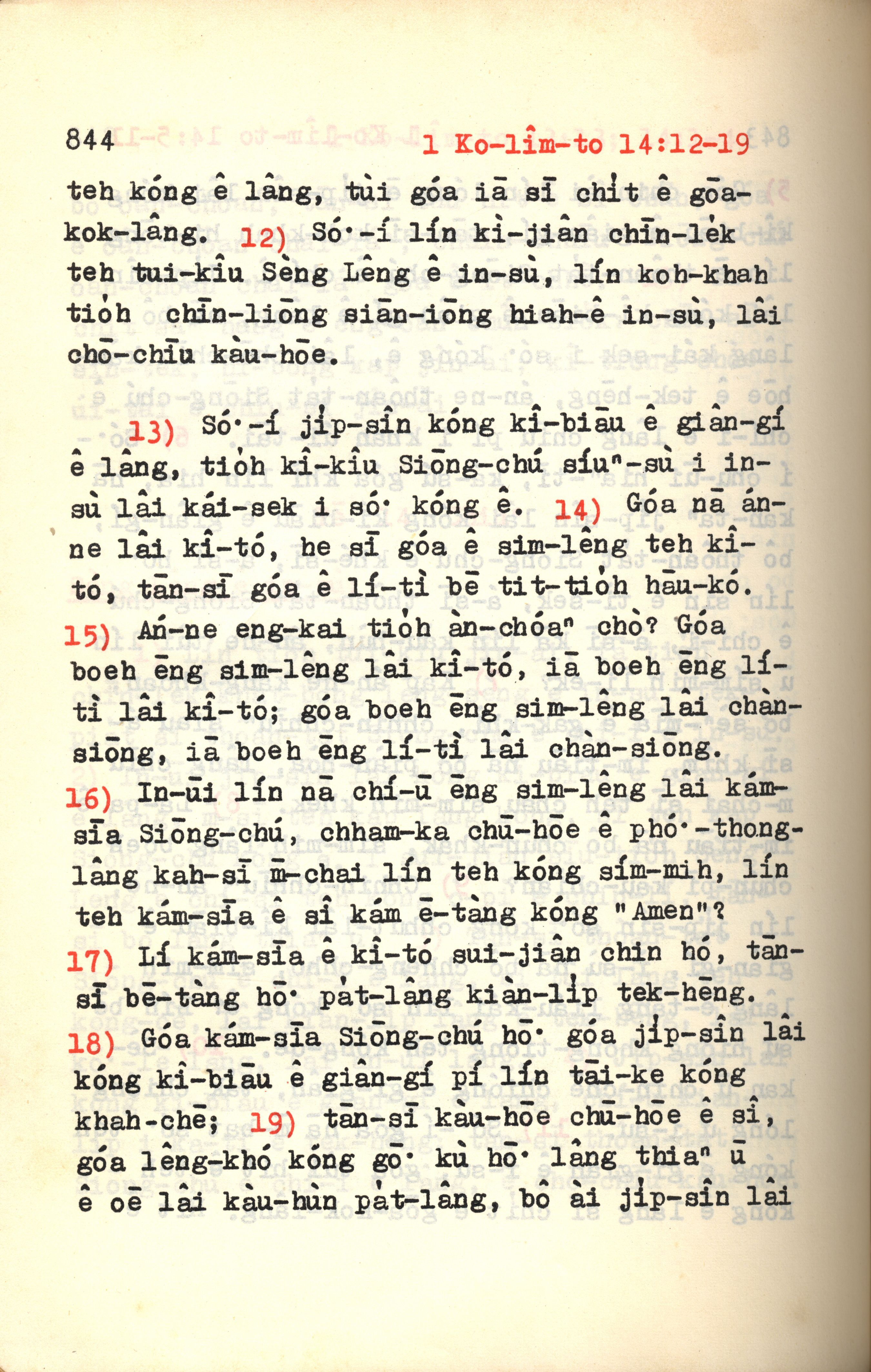 1972年新约红皮圣经 哥林多前书 14 章 12 节到 14 章 19 节