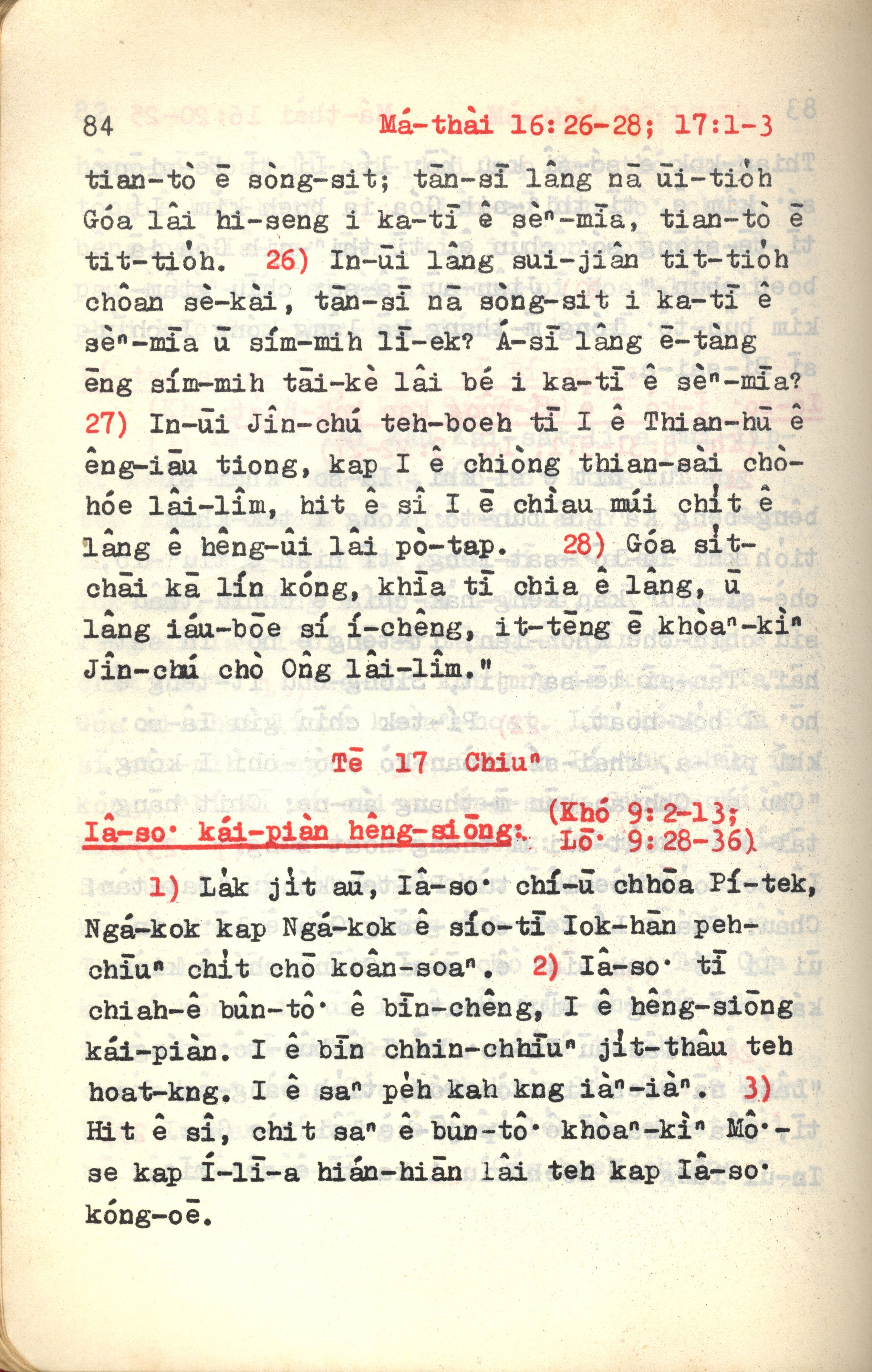1972年新约红皮圣经 马太福音 16 章 26 节到 17 章 3 节