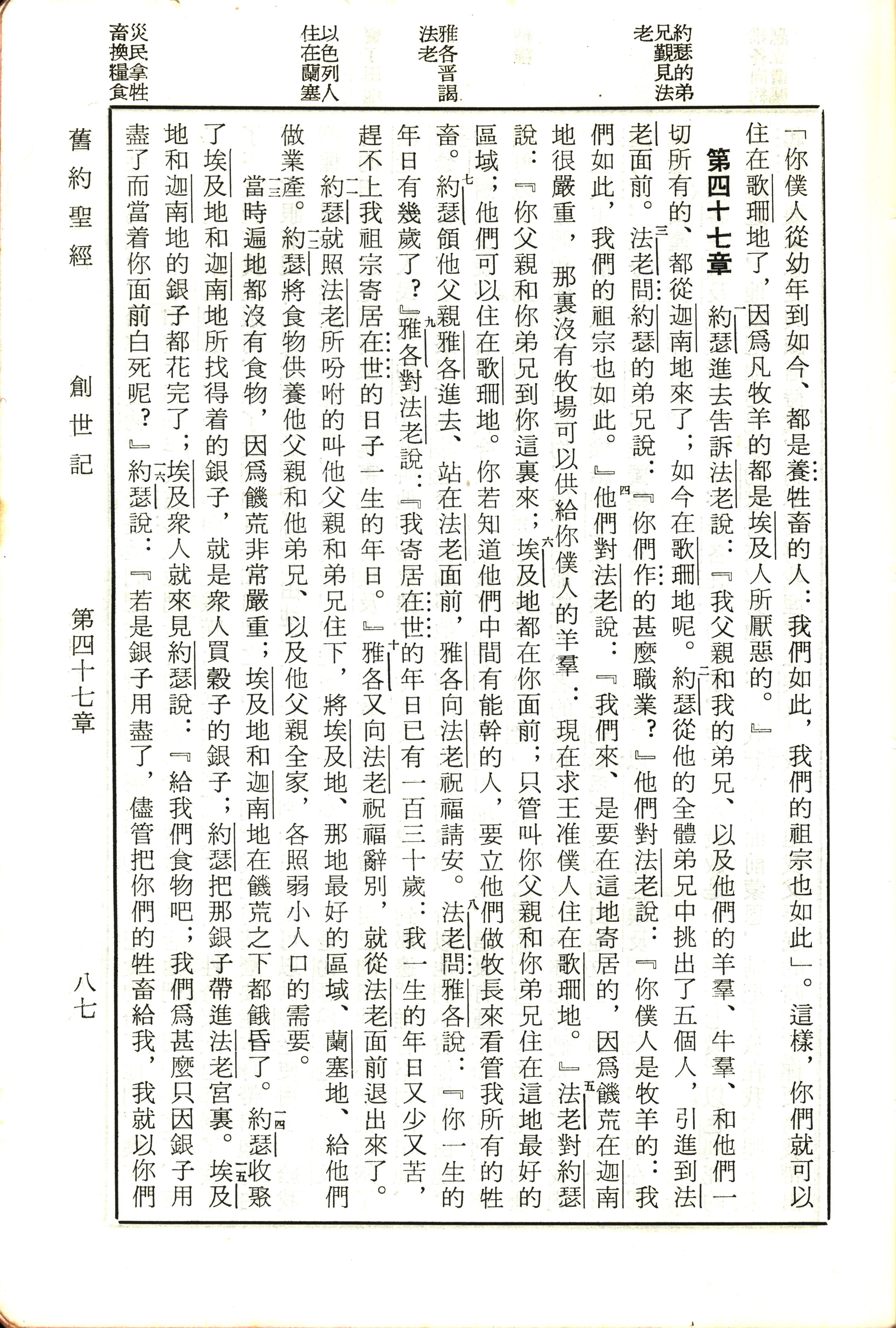 1970年新旧约全书(吕振中译本) 创世记 47 章 1 节到 47 章 16 节