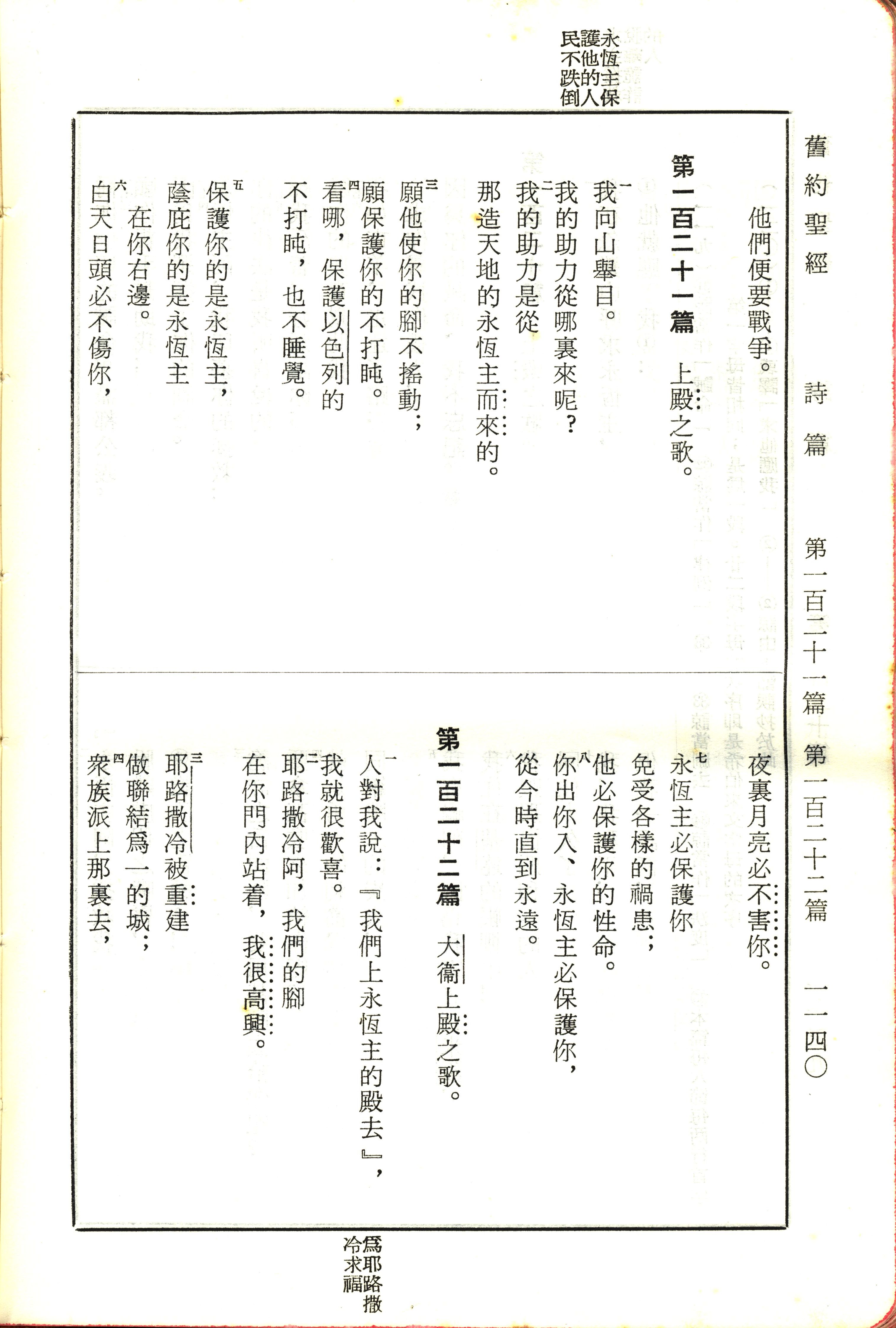 1970年新旧约全书(吕振中译本) 诗篇 121 章 1 节到 122 章 4 节