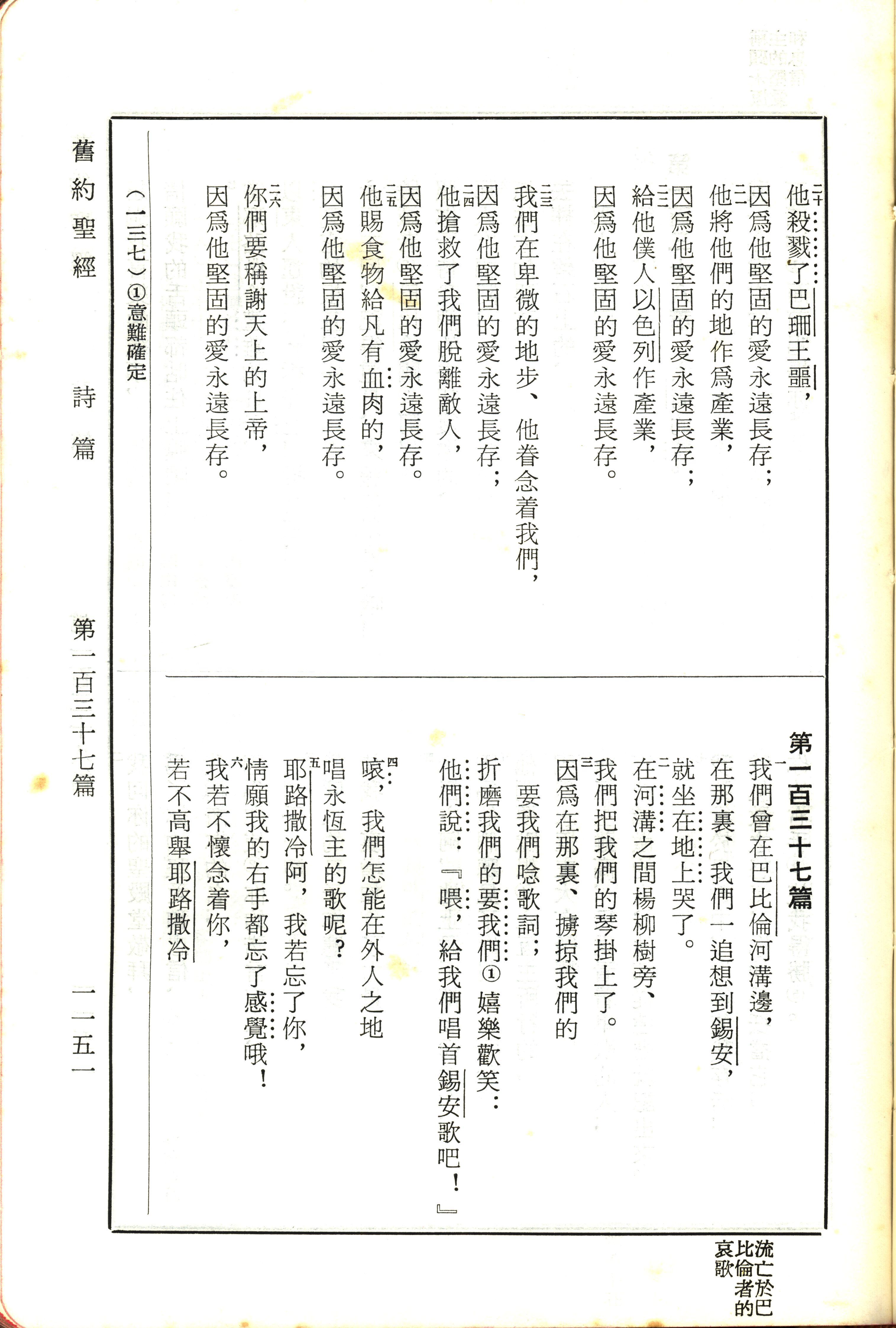 1970年新旧约全书(吕振中译本) 诗篇 136 章 20 节到 137 章 6 节